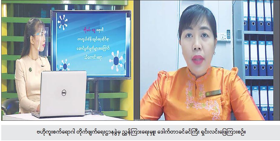 ၂၀၂၁ ခုနှစ်မကုန်ခင်မှာ ကာကွယ်ဆေးထိုးနှံဖို့ အကျုံးဝင်တဲ့ အသက် ၁၈ နှစ်အထက် လူဦးရေ ၃၈ ဒသမ ၃ သန်းရဲ့ ထက်ဝက် ၅၀ ရာခိုင်နှုန်း သန်း ၂၀ လောက်ကို ကျွန်မတို့ ကာကွယ်ဆေးထိုး ပေးဖို့ ရည်မှန်းထားတာဖြစ်ပါတယ်။ နိုင်ငံတော်အစိုးရက ပြည်သူလူထုကို ကာကွယ်ဆေးတွေ အခမဲ့ထိုးနှံပေးဖို့ စီစဉ်တာနဲ့ တစ်ပြိုင်နက်တည်းမှာ ပုဂ္ဂလိက ကဏ္ဍကလည်း ကာကွယ်ဆေးတွေကို ဝယ်ယူ တင်သွင်းဖြန့်ချီပြီး ငွေကြေးအသင့်အတင့် တတ်နိုင်တဲ့သူတွေ ကာကွယ်ဆေးက ထိုးထားချင်တယ်၊သို့သော် ဦးစားပေးအုပ်စုထဲမှာ မပါသေးဘူး။ စောင့်နေရမှာစိုးတဲ့အတွက် လောလောဆယ် ကာကွယ်ဆေးထိုးထားချင်တယ်၊ ကာကွယ်ချင်တယ်ဆိုရင် ပုဂ္ဂလိကကဏ္ဍက တင်သွင်းဖြန့်ချိတဲ့ ကာကွယ်ဆေးတွေကို ထိုးနှံဖို့အတွက် မတ်လထဲက ပုဂ္ဂလိကကဏ္ဍကျန်းမာရေးစောင့်ရှောက်မှု အဆင့်မြှင့်တင်ဖို့ကာကွယ် ဆေးတွေကို တင်သွင်းဖြန့်ချိခွင့်ပြုဖို့ ကိစ္စတွေကိုလည်း ခွင့်ပြုထားပြီး ဖြစ်ပါတယ်။ တချို့ကုမ္ပဏီတွေလည်း ခွင့်ပြုချက်ရရှိပြီး ကာကွယ်ဆေးတွေ ထိုးနှံဖို့အတွက် Pre Order မှာတဲ့ ကိစ္စတွေကိုလည်း ဆောင်ရွက်နေတာ တွေ့ရှိရပါတယ်။
