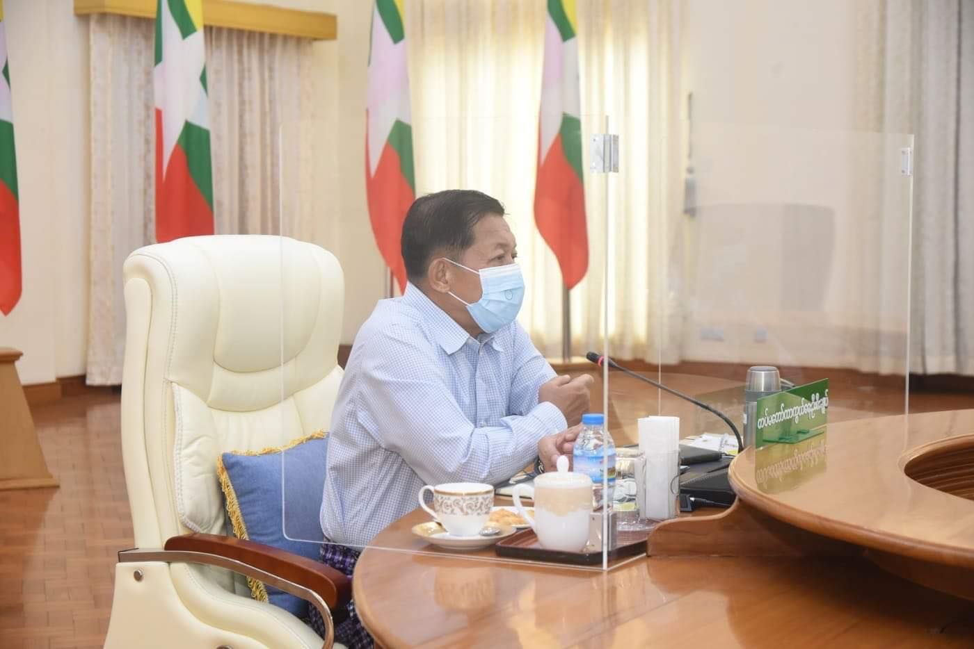 ကိုဗစ် - ၁၉ ရောဂါ ကာကွယ်ထိန်းချုပ်ကုသရေးဆိုင်ရာ စတုတ္ထအကြိမ် ညှိနှိုင်းအစည်းအဝေးကို ယနေ့နံနက် ၁၀ နာရီတွင် နေပြည်တော်ရှိ ဘုရင့်နောင်ရိပ်သာ အစည်းအဝေးခန်းမ၌ ကျင်းပပြုလုပ်လျက်ရှိပြီး နိုင်ငံတော်စီမံ အုပ်ချုပ်ရေးကောင်စီ ဥက္ကဋ္ဌ တပ်မတော်ကာကွယ်ရေးဦးစီးချုပ် ဗိုလ်ချုပ်မှူးကြီး မင်းအောင်လှိုင် တက်ရောက် အမှာစကားပြောကြားသည်။