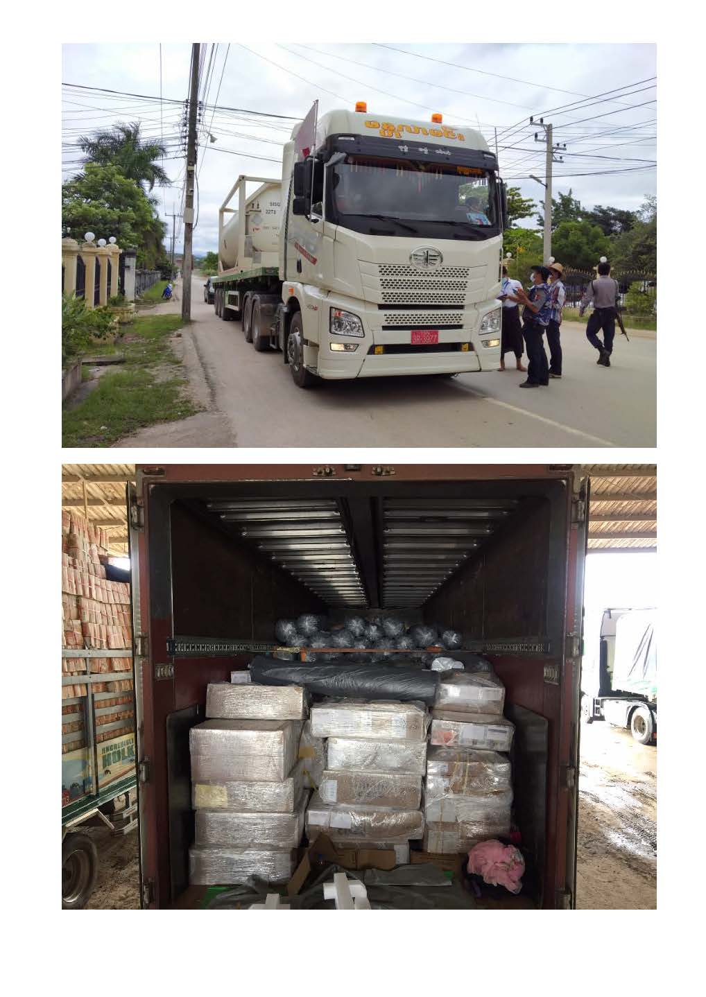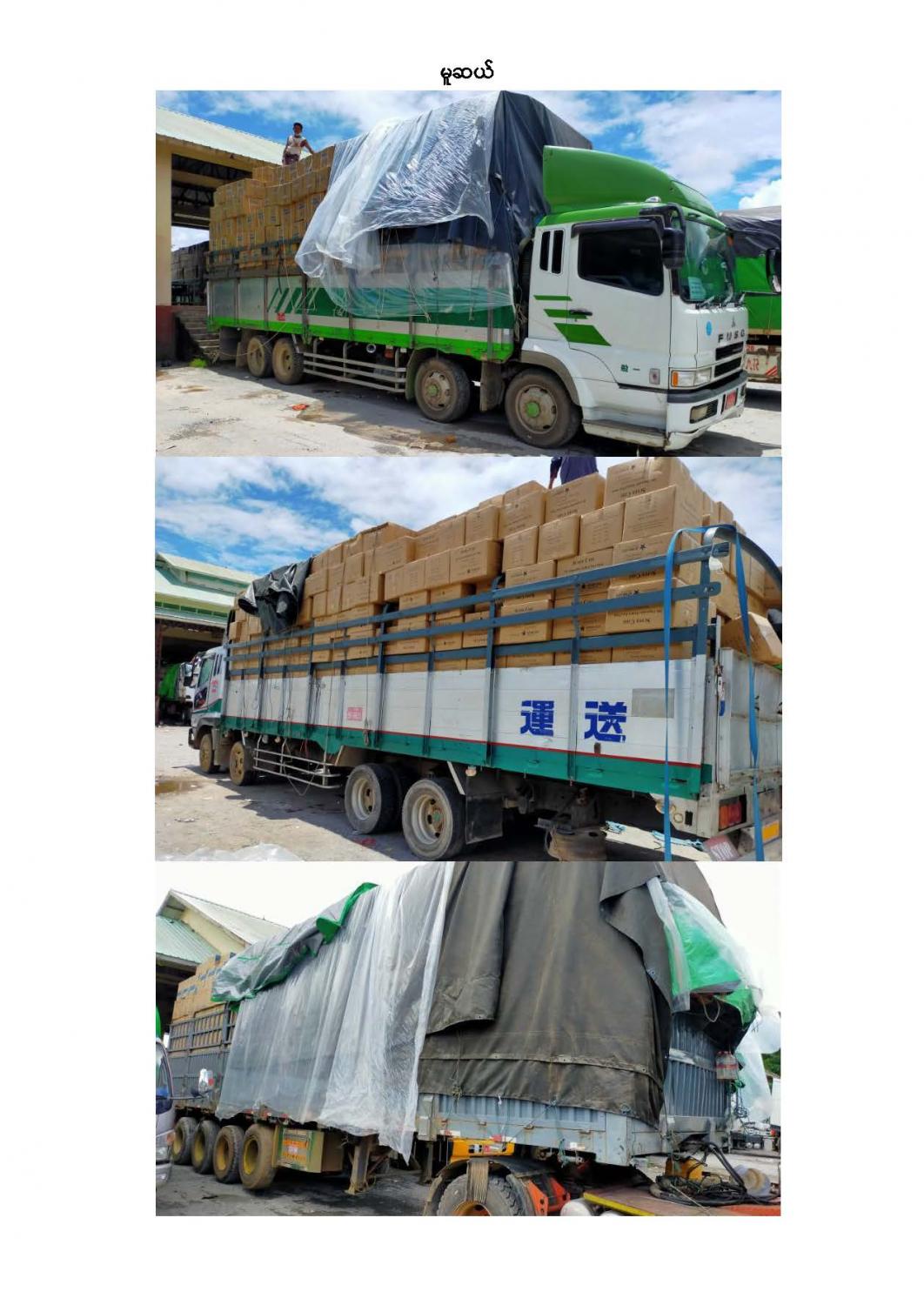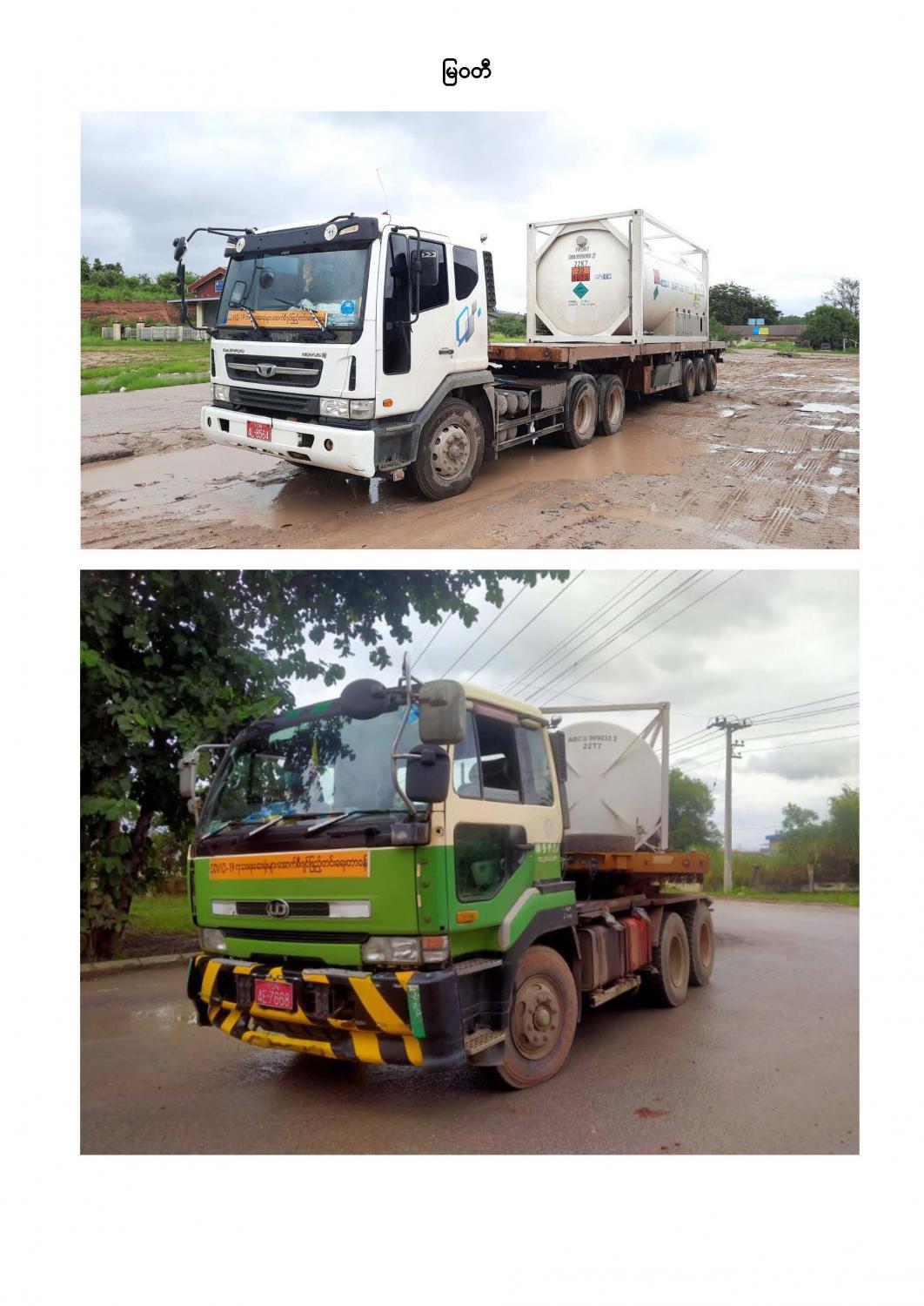 ကိုဗစ်-၁၉ ကူးစက်ရောဂါ ကာကွယ်ကုသရေးပစ္စည်းများတင်သွင်းရာတွင် နိုင်ငံတော်မှ ရောဂါထိန်းချုပ်မှုအတွက် ဦးစားပေးဆောင်ရွက်လျက်ရှိ သည့် ဇူလိုင် ၁၂ ရက်မှ ၂၃ ရက်အထိ မော်တော်ယာဉ် အစီး (၃၅၀) ဖြင့် အောက်ဆီဂျင်အရည် (Bowser) ယာဉ်ဖြင့် (၄၅၅) တန်၊ အောက်ဆီဂျင်အရည် (အိုးဖြင့်) (၂၆၈) တန်၊ အောက်ဆီဂျင်ဓါတ်ငွေ့ (အိုးဖြင့်) (၆၂) တန်၊ အိမ်သုံး အောက်ဆီဂျင်စက် (၂၅၂၇၇)ခု၊ Test Kit (၁၄၆၈၅၀) ခု၊ နှာခေါင်းစီး ( Mask ) (၆၁၇) တန် တင်သွင်းခွင့်ပြုခဲ့ပြီးဖြစ်သည်။
