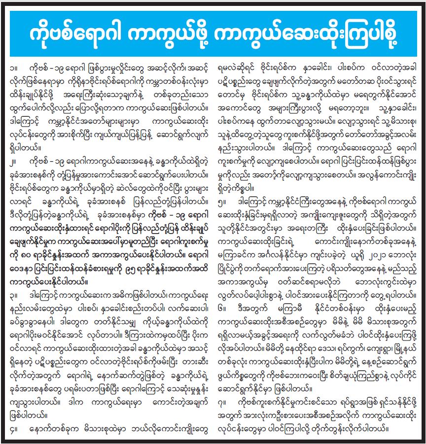 ကိုဗစ်ရောဂါ ကာကွယ်ဖို့ ကာကွယ်ဆေးထိုးကြပါစို့