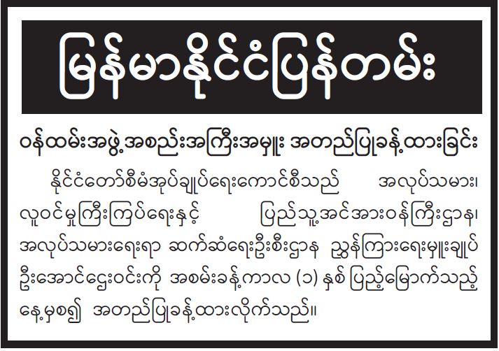 ဝန်ကြီးဌာန ကြေညာချက်များ