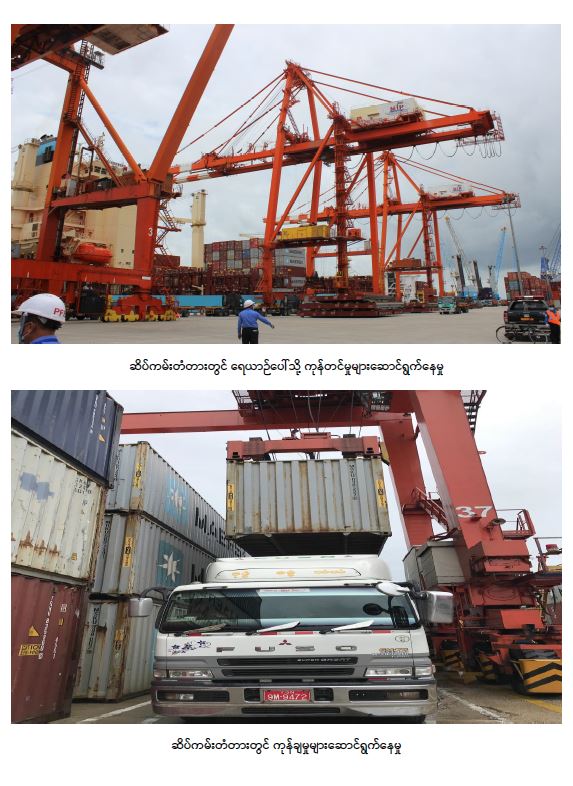 နိုင်ငံတကာ ကုန်သွယ်ရေယာဉ်များ ဝင်/ထွက်မှုအနေဖြင့် ဇူလိုင် ၁၇ ရက်မှ ယနေ့အထိ ရန်ကုန်နှင့်သီလဝါ ဆိပ်ကမ်းတံတား အသီးသီးသို့ ကုန်သွယ်ရေယာဉ် အဝင် (၃၅)စီး၊ အထွက် (၂၁)စီး၊ ကုန်သေတ္တာ အဝင် (၁၃၇၀၀)TEU၊ အထွက် (၁၀၆၇၁)TEU ၊ အထွေထွေကုန်စည် အဝင် (၂၅၉၄၅၄) မက်ထရစ်တန်၊ အထွက် (၂၂၄၀၁)မက်ထရစ်တန် ရှိခဲ့သည်။ ထို့အပြင် ပင်လယ်ရေကြောင်းဖြင့် တင်သွင်းရောက်ရှိလာသည့် ကူးစက်ရောဂါကာကွယ်ရေး ဆေးနှင့် ဆေးပစ္စည်းများကို ပြည်သူများ လက်ဝယ်သို့ အမြန်ဆုံးထုတ်ပေး နိုင်ရန်အတွက် မြန်မာ့ဆိပ်ကမ်းအာဏာပိုင်မှ ဝန်ထမ်းများဖြင့် (၂၄)နာရီ တာဝန်ချထား ဆောင်ရွက်ပေးလျက် ရှိသည်။