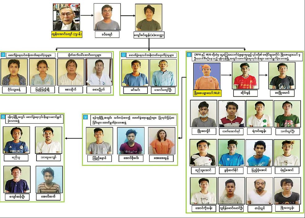 အကြမ်းဖက်အဖွဲ့များအဖြစ် ကြေညာထားသော CRPH၊ NUG အဖွဲ့များသည် မြန်မာနိုင်ငံအတွင်း ကိုဗစ်-၁၉ ရောဂါကျရောက်နေသည့် ကာလများ၌ပင် ပြည်သူလူထုအပေါ် စာနာထောက်ထားမှု မရှိဘဲဆူပူအကြမ်းဖက်လုပ်ဆောင်နေသူများနှင့် NLD ပါတီဝင်များ၊ ၎င်းပါတီအား ထောက်ခံအားပေးသူများဖြင့် တရားမဝင်အကြမ်းဖက်အဖွဲ့များ ဖွဲ့စည်း၍ အစိုးရ၏အုပ်ချုပ်မှု ယန္တရားပျက်ပြားစေရန်ရည်ရွယ်ကာ အပြစ်မဲ့ပြည်သူများအား ဒလန်ဟုစွပ်စွဲသတ်ဖြတ်ခြင်း၊ စာသင်ကျောင်းများအပါအဝင် အစိုးရပိုင် အဆောက်အဦများအား မီးရှို့ဖျက်ဆီးခြင်း၊ မိုင်းဖြင့်တိုက်ခိုက်ခြင်းများ ဆောင်ရွက်လျက်ရှိသည့်အပြင် အကြမ်းဖက်တိုက်ခိုက်မှုများပြုလုပ်ရန် လုပ်ဆောင်လျက်ရှိသဖြင့် လုံခြုံရေးတပ်ဖွဲ့ဝင်များက သတင်းလက်ဦးမှုရယူပြီး ဖော်ထုတ် ဖမ်းဆီးနိုင်ရေး လိုအပ်သည့် လုံခြုံရေးလုပ်ငန်းများကို အထူးကြပ်မတ်ဆောင်ရွက်လျက်ရှိသည်။