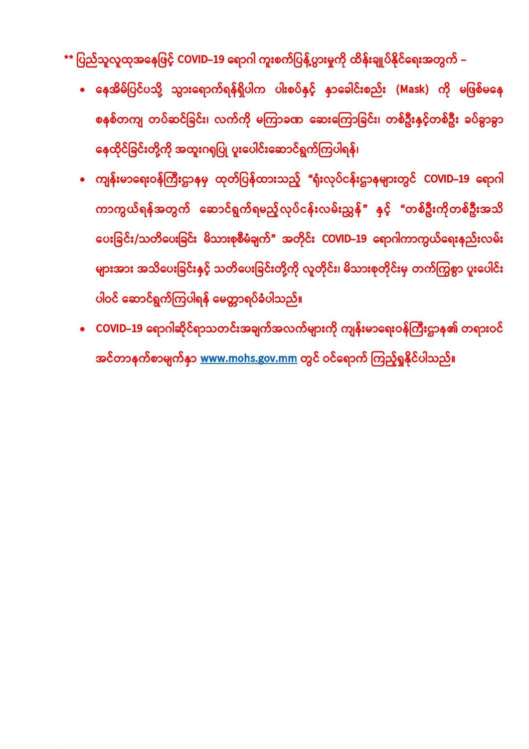 COVID-19 ရောဂါစောင့်ကြပ်ကြည့်ရှုမှုနှင့်ပတ်သက်၍ သတင်းထုတ်ပြန်ခြင်း (၃-၈-၂၀၂၁) ရက်နေ့၊ ည (၈:၀၀)နာရီ 08/03/2021