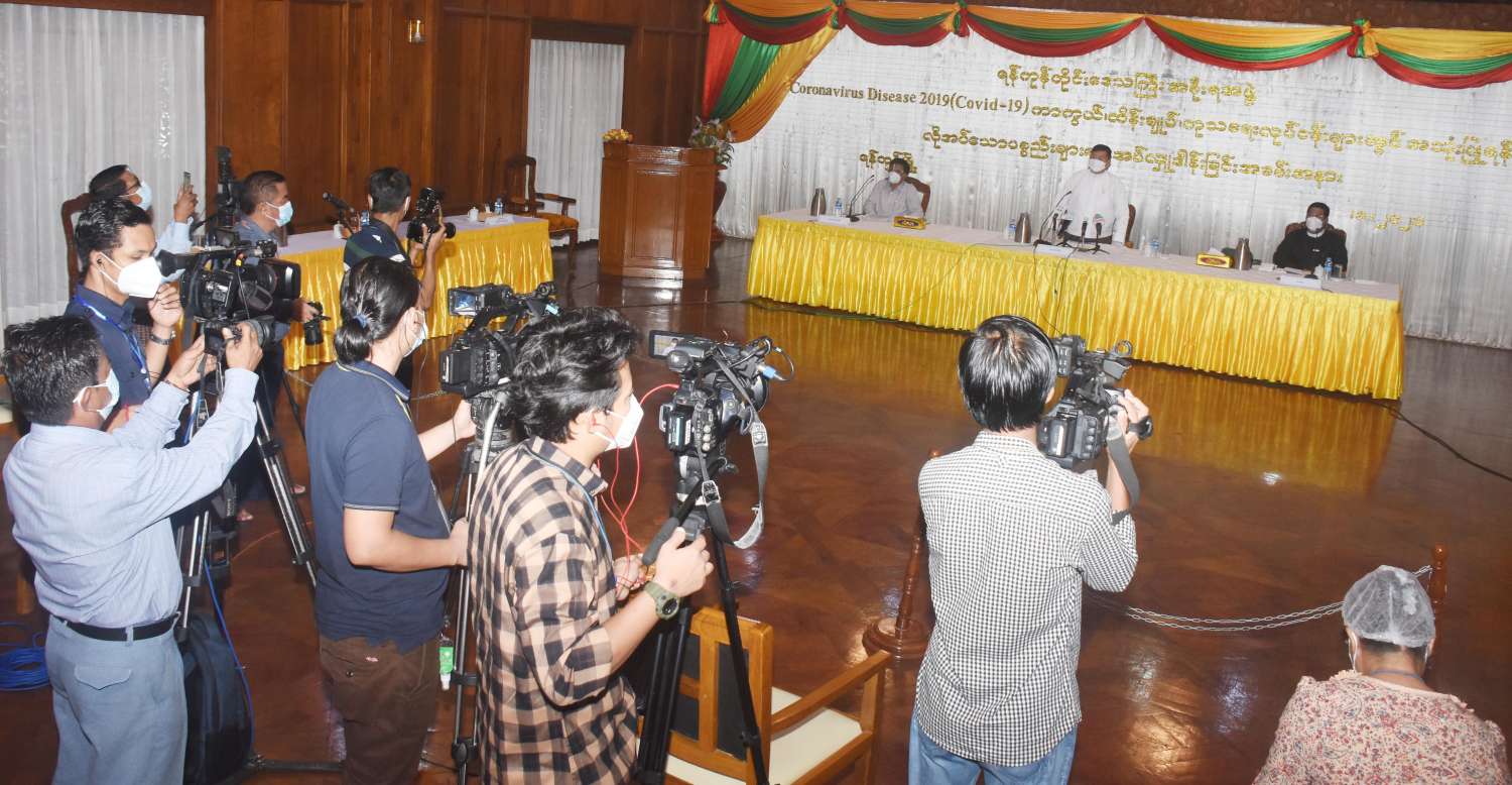 ရန်ကုန်တိုင်းဒေသကြီး အစိုးရအဖွဲ့ ကိုဗစ်-၁၉ ရောဂါ ထိန်းချုပ်ကုသရေးလုပ်ငန်း ဆောင်ရွက်မှု အခြေအနေများ နှင့်စပ်လျဉ်း၍ စာနယ်ဇင်းရှင်းလင်းပွဲကို ယနေ့မွန်းလွဲ ၁ နာရီတွင် ရန်ကုန်တိုင်းဒေသကြီး အစိုးရအဖွဲ့ရုံး၌ ကျင်းပသည်။