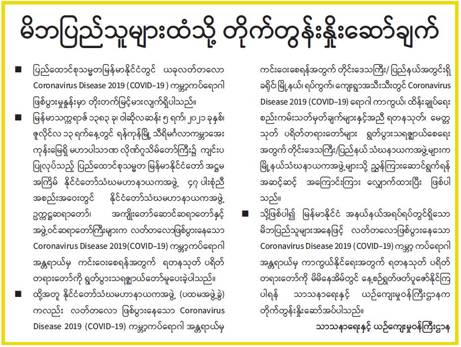 မိဘပြည်သူများထံသို့ တိုက်တွန်းနှိုးဆော်ချက်