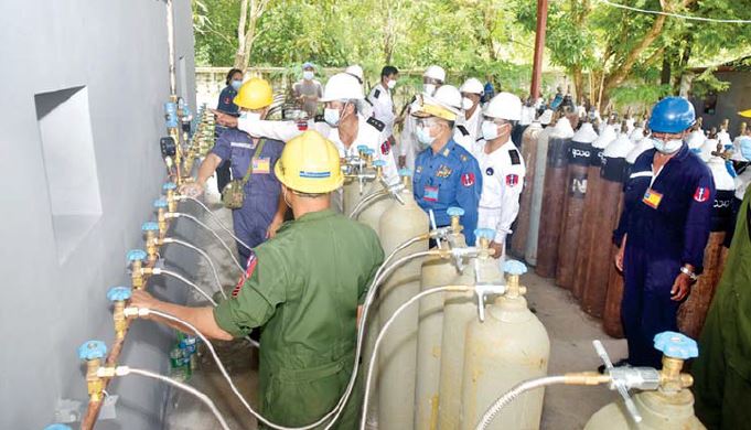 ကိုဗစ်-၁၉ ရောဂါ ကာကွယ်၊ ထိန်းချုပ်၊ ကုသရေး လုပ်ငန်းများအတွက် အောက်ဆီဂျင်လိုအပ်ချက်များ ကို ပိုမိုဖြည့်တင်းပေးနိုင်ရန်အတွက် သန်လျင် တပ်နယ်ရှိ ရေတပ်သင်္ဘောကျင်းဌာနချုပ်တွင် KZO100 အမျိုးအစား Oxygen Plant အား ဇူလိုင် ၂၁ ရက်မှစတင်၍ တပ်မတော်(ရေ)မှ အင်ဂျင်နီယာ များဖြင့် တပ်ဆင်စမ်းသပ်မောင်းနှင်ခဲ့ရာ ယနေ့တွင် အောက်ဆီဂျင်ဓာတ်ငွေ့များ စတင်ထုတ်လုပ် ဖြည့်တင်းပေးနိုင်ခဲ့ပြီဖြစ်ကြောင်း သိရသည်။