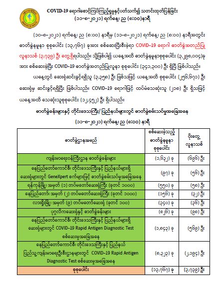 COVID-19 ရောဂါစောင့်ကြပ်ကြည့်ရှုမှုနှင့် ပတ်သက်၍သတင်းထုတ်ပြန်ခြင်း (၁၁-၈-၂၀၂၁) ရက်နေ့၊ ည (၈:၀၀)နာရီ 08/11/2021