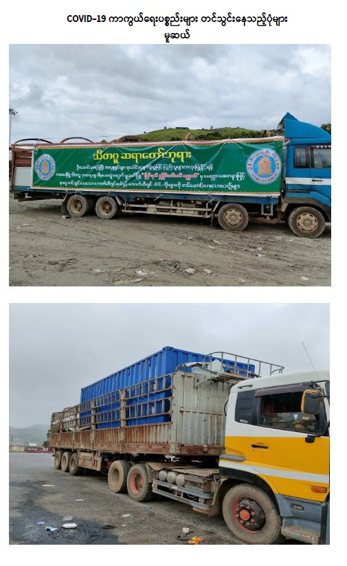 အပြည်ပြည်ဆိုင်ရာလေဆိပ်၊ ပင်လယ်ရေကြောင်းဆိပ်ကမ်းများနှင့် နယ်စပ်ကုန်သွယ်ရေး စခန်းများမှတစ်ဆင့် ပြည်သူများ အရေးပေါ်လိုအပ်လျက်ရှိသော ကိုဗစ်-၁၉ ရောဂါကာကွယ်၊ ထိန်းချုပ်၊ ကုသရေးဆိုင်ရာပစ္စည်းများအား တင်သွင်းမှုကို အများပြည်သူရုံးပိတ်ရက် များတွင်လည်း ရပ်ဆိုင်းထားခြင်းမရှိပဲ ပုံမှန်အတိုင်း လုပ်ငန်းများဆောင်ရွက်ပေးလျက်ရှိရာ ယနေ့တွင် ရန်ကုန်အပြည်ပြည်ဆိုင်ရာလေဆိပ်မှ Oxygen Concentrator (၂၅၃၂)ခု၊ Test Kit (၇၂၂၆) ခု၊ နှင့် နှာခေါင်းစည်း (Mask) (၁၁) တန် ၊ အပြည်ပြည်ဆိုင်ရာဆိပ်ကမ်းမှ Oxygen Concentrator (၁၅)ခု အပါအဝင် မူဆယ်၊ ချင်းရွှေဟော်၊ မြဝတီ၊ တာချီလိတ်၊ ထီးခီး ကုန်သွယ်ရေးစခန်းများမှ အောက်ဆီဂျင်အရည်(Bowser) ယာဉ်(၂)စီးဖြင့် (၃၅)တန်၊ အောက်ဆီဂျင်အရည်(အိုးဖြင့်) (၇)တန်၊ အောက်ဆီဂျင် (အိုးခွံ)(၆၆၉၈)ခု၊ Oxygen Plant (၁)ခု၊ Oxygen Generator (၁)ခု၊ အိမ်သုံးအောက်ဆီဂျင်စက် (Oxygen Concentrator)(၂၈၈၈)ခု၊ Test Kit (၇၂၂၆) ခု၊ PPE ဝတ်စုံ (၁၅၉၆၀) ၊ လက်အိတ်(၈)တန်နှင့် နှာခေါင်းစည်း (Mask) (၄၉) တန်တင်သွင်းနိုင်ခဲ့သည်။ အထက်ပါပစ္စည်းများအား ကုမ္ပဏီ(၂၄)ခုမှ ယာဉ်စီးရေ (၄၃)စီးဖြင့် တင်သွင်းလာခြင်း ဖြစ်သည်။