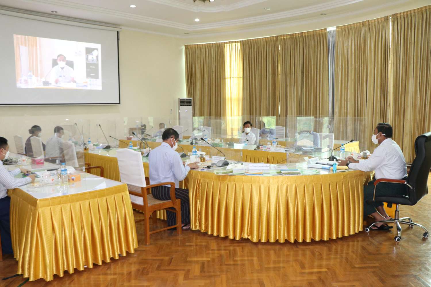 ထို့နောက် တိုင်းဒေသကြီး/ ပြည်နယ် ဦးစီးမှူးများက ဗီဒီယိုကွန်ဖရင့်စနစ်ဖြင့် စီမံကိန်းလုပ်ငန်း ဆောင်ရွက်ပြီးစီးမှုများကို ရှင်းလင်းတင်ပြကြရာ ပြည်ထောင်စုဝန်ကြီးက လိုအပ်သည်များ ပေါင်းစပ်ညှိနှိုင်း ဆောင်ရွက်ပေးခဲ့ကြောင်း သိရသည်။
