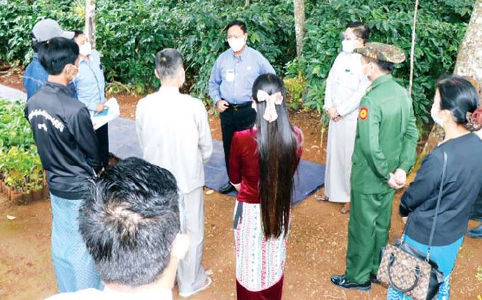 သမဝါယမနှင့် ကျေးလက်ဖွံ့ဖြိုးရေးဝန်ကြီးဌာန ပြည်ထောင်စုဝန်ကြီး ဦးလှမိုးသည် ဩဂုတ် ၂၄ ရက် က ရှမ်းပြည်နယ်(တောင်ပိုင်း)ရွာငံမြို့နယ်အတွင်းရှိ ကော်ဖီစိုက်ပျိုးထုတ်လုပ်ရေး သမဝါယမအသင်း များ၏ လိုအပ်ချက် များကို ဖြည့်ဆည်းပေးနိုင်ရေးနှင့် ဒေသဖွံ့ဖြိုးရေးလုပ်ငန်းများ အကောင်အထည်ဖော်ဆောင်ရွက်နေမှုကို ကွင်းဆင်း ကြည့်ရှုစစ်ဆေး သည်။