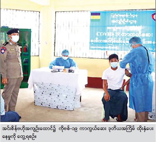 ထိုသို့ ကိုဗစ်-၁၉ ရောဂါ ကာကွယ်ဆေး ဒုတိယအကြိမ် ထိုးနှံဆောင်ရွက်ပေးရာတွင် အကျဉ်းထောင် (အင်းစိန်)ရှိ အကျဉ်းသား၊ အချုပ်သား စုစုပေါင်း၂၄၁၇ဦးအား ကျန်းမာ ရေးဝန်ကြီးဌာနက ချမှတ် လမ်းညွှန်ထားသော ကိုဗစ်-၁၉ ကာကွယ်ထိန်းချုပ်ရေး စည်းကမ်းချက်များနှင့်အညီ ဒုတိယအကြိမ် ထိုးနှံပေးခဲ့ခြင်းဖြစ်သည်။