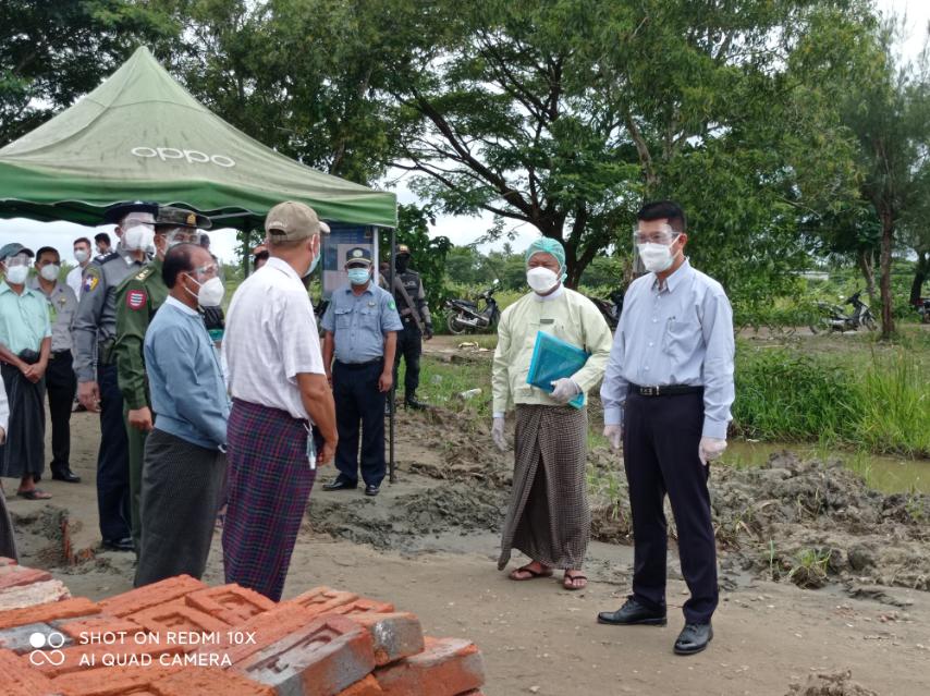 ဧရာဝတီတိုင်းဒေသကြီး၊ ဖျာပုံခရိုင်၊ ဘိုကလေးမြို့နယ် အောက်စီဂျင်စက်ရုံတည်ဆောက်နေမှု အခြေအနေများနှင့် မြို့နယ်တွင်း ကိုဗစ်-၁၉ ကာကွယ်ထိန်းချုပ်ရေးလုပ်ငန်းများ ဆောင်ရွက် နေမှု အခြေအနေများကို ယနေ့ နံနက်(၁၀)နာရီခန့်တွင် ဧရာဝတီတိုင်းဒေသကြီး ဝန်ကြီးချုပ် ဦးတင်မောင်ဝင်းနှင့်အဖွဲ့မှ ဖျာပုံခရိုင်စီမံအုပ်ချုပ်ရေးအဖွဲ့ ဥက္ကဋ္ဌ ဦးအးလွင်၊ မြို့နယ်စီမံ အုပ်ချုပ် ရေးအဖွဲ့ ဥက္ကဋ္ဌ ဦးသိန်းဇော်ဦးတို့နှင့်အတူ လှည့်လည်ကြည့်ရှု အားပေး ခဲ့သည်။