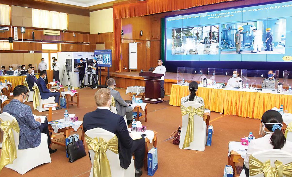 ဦးစွာ နိုင်ငံတော်စီမံအုပ်ချုပ်ရေးကောင်စီ၊ သတင်းထုတ်ပြန်ရေးအဖွဲ့ ခေါင်းဆောင် ဗိုလ်ချုပ်ဇော်မင်းထွန်းက နိုင်ငံတော်စီမံ အုပ်ချုပ်ရေးကောင်စီဥက္ကဋ္ဌ၊ နိုင်ငံတော် ဝန်ကြီးချုပ် ဗိုလ်ချုပ်မှူးကြီး မင်းအောင်လှိုင်၏ နိုင်ငံတော်စီမံအုပ်ချုပ်ရေးကောင်စီ (၆)လပြည့် မိန့်ခွန်း၌ ပြောကြားခဲ့သည့် နိုင်ငံတော်အစိုးရ၏ အခြေခံနိုင်ငံရေး၊ လူမှုရေးနှင့် လူမှုစီးပွား ဘဝဖွံ့ဖြိုး တိုးတက်ရေးဆိုင်ရာဆောင်ရွက်ချက်များ၊ ကိုဗစ်-၁၉ ရောဂါနှင့်ပတ်သက်၍ ကာကွယ်ဆေးများရရှိမှု၊ ထိုးနှံပေးမှုများ၊ အောက်ဆီဂျင် လိုအပ်ချက်များနှင့် ပတ်သက်ပြီး အိမ်နီးချင်းမိတ်ဆွေနိုင်ငံများမှ Liquid Oxygen များ မှာယူတင်သွင်းခဲ့မှု၊ နိုင်ငံတော်ပိုင်၊ တပ်မတော်ပိုင်နှင့် ပုဂ္ဂလိက ပိုင် Oxygen Plant များမှ ဆေးရုံသုံးအောက်ဆီဂျင်များရရှိအောင် အင်ပြည့်အားပြည့် ထုတ်လုပ် ခြင်းနှင့် အသစ်တည်ဆောက်ခြင်းများ ဆောင်ရွက်နေမှု၊ အထောက်အကူပြု ပစ္စည်း ဆေးပစ္စည်းများနှင့် အလှူငွေများကို မိတ်ဆွေနိုင်ငံများ၊ အဖွဲ့အစည်းများနှင့် အလှူ ရှင်များက ပေးအပ်လှူဒါန်းမှု၊ ကူညီမှုအားလုံးအပေါ် မြန်မာနိုင်ငံတော် အစိုးရက ကျေးဇူးတင်ရှိမှု၊ ကိုဗစ်-၁၉ ရောဂါ ကာကွယ်၊ ထိန်းချုပ်ရေးအတွက် ဗဟိုအဆင့် အစည်းအဝေးများ၊ အရေးပေါ်တုံ့ပြန်ရေး အစည်းအဝေးများကို နိုင်ငံတော်ဝန်ကြီး ချုပ်၊ ဒုတိယဝန်ကြီးချုပ် တို့ဦးဆောင်ပြီး ကျယ်ကျယ်ပြန့်ပြန့်ပြုလုပ်ခြင်း၊ လက်တွေ့ကျကျစီမံခြင်း ဆောင်ရွက်နေမှု၊ ရောဂါကာကွယ်ရေး အထောက် အကူပြုပစ္စည်း များကို တိုင်းဒေသကြီးနှင့် ပြည်နယ်များသို့ တပ်မတော်လေယာဉ်များ၊ ရဟတ်ယာဉ် များ၊ Cold Chain Delivery Logistics မော်တော်ယာဉ်ကြီးများဖြင့် ပို့ဆောင် ဖြန့်ဖြူးပေးနေမှု၊ ကိုဗစ်ကာလအတွင်း ပြည်သူများစားရေး အဆင်ပြေစေရန် အခြေခံ စားသောက်ကုန်များနှင့် ဆေးဝါးများကို ဈေးနှုန်းသက်သာစွာဖြင့် ရွေ့လျား ဈေးကား (Mobile Market)များ ဖြင့် လိုက်လံရောင်းချပေးနေမှု၊ နိုင်ငံတော်စီမံ အုပ်ချုပ်ရေးကောင်စီအနေဖြင့် ရှေ့လုပ်ငန်းစဉ်(၅)ရပ်နှင့် ဦးတည် ချက်(၉)ရပ်ချမှတ်ကာ အကောင်အထည်ဖော် ဆောင်ရွက်နေမှုနှင့် လုံခြုံရေးတပ်ဖွဲ့ဝင်များ အနေဖြင့် နိုင်ငံတော် တည်ငြိမ်အေးချမ်းရေး၊ ပြည်သူလူထု၏ အသက်အိုးအိမ် စည်းစိမ်လုံခြု ရေးအတွက် လုံခြုံရေးဆိုင်ရာ ကိစ္စရပ်များအား ကြိုးပမ်းဆောင်ရွက်နေမှု အခြေ အနေများကို ကျယ်ကျယ်ပြန့်ပြန့် ရှင်းလင်းပြောကြားသည်။