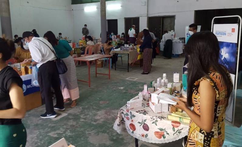 ကိုဗစ်-၁၉ ရောဂါ တတိယလှိုင်းဖြစ်ပွားနေသည့် ကာလအတွင်း ရန်ကုန်တိုင်းဒေသကြီးအတွင်းရှိ ပြည်သူများ၏ ဆေးဝါးလိုအပ်ချက်အား ဖြည့်ဆည်းပေးနိုင်ရေး၊ ဆေးဝါးများလွယ်လင့်တကူ ဝယ်ယူနိုင်ရေး အရည်အသွေးနှင့် ဈေးနှုန်းမှန်ကန်စွာ ရရှိစေရေးအတွက် ရန်ကုန်တိုင်းဒေသကြီး အစိုးရအဖွဲ့၏ ညွှန်ကြားချက်အရ မြန်မာနိုင်ငံ ဆေးနှင့် ဆေးပစ္စည်းလုပ်ငန်းရှင်များအသင်း၏ စီစဉ်မှုဖြင့် ဒုတိယနေရာအဖြစ် ပန်းဘဲတန်းမြို့နယ်၊ ကုန်သည်လမ်းနှင့် ဗိုလ်ဆွန်ပက်လမ်းထောင့်ရှိ မြန်မာအပြည်ပြည်ဆိုင်ရာ ကုန်သွယ်မှုဗဟိုဌာန အဆောက်အအုံ၌ အိမ်သုံးဆေးဝါးများ လက်လီ လက်ကား ဖြန့်ဖြူး ရောင်းချခြင်းအစီအစဉ်ကို ဆောင်ရွက်ခဲ့ရာ ယနေ့တွင် ဆေးနှင့် ဆေးပစ္စည်း ဖြန့်ဖြူးရောင်းချသောကုမ္ပဏီ ၁၆ ခုမှ အိမ်သုံးဆေးဝါး ၂၁၄ မျိုးက ရောင်းချပေးလျက်ရှိပြီး ၃၂ သိန်းကျော်တန်ဖိုးရှိ ဆေးနှင့်ဆေးပစ္စည်းများကို ရောင်းချခဲ့သည်။