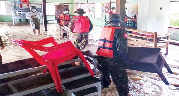 ပဲခူးတိုင်းဒေသကြီး၊ အုတ်တွင်းမြို့နယ်အတွင်း တောင်ကျရေများကျဆင်းပြီး ဘုံချောင်း၊ နတ်ရေတွင်းချောင်းနှင့် ကျွဲမသေချောင်းတို့ ရေလျှံမှုများကြောင့် အုတ်တွင်း မြို့နယ်၊ ကျွဲပွဲမြို့နှင့် ညောင်ခြေထောက်မြို့တို့ရှိ ကျေးရွာများ၊ ကားလမ်း၊ ရထားလမ်းတို့၌ ရေဝင်ရောက်မှုများဖြစ်ပေါ်ခဲ့ရာ ယနေ့တွင် တောင်ပိုင်းတိုင်းစစ်ဌာနချုပ်မှ နယ်မြေခံ တပ်မတော်သားများ၊ မြန်မာနိုင်ငံရဲတပ်ဖွဲ့ဝင်များ၊ မီးသတ်တပ်ဖွဲ့ဝင်များ၊ ဌာနဆိုင်ရာ ဝန်ထမ်းများနှင့် စေတနာ့ဝန်ထမ်းများ ပူးပေါင်း၍ ရေဘေးကူညီကယ်ဆယ်ရေး လုပ်ငန်းများ ဆောင်ရွက်ပေးသည်။