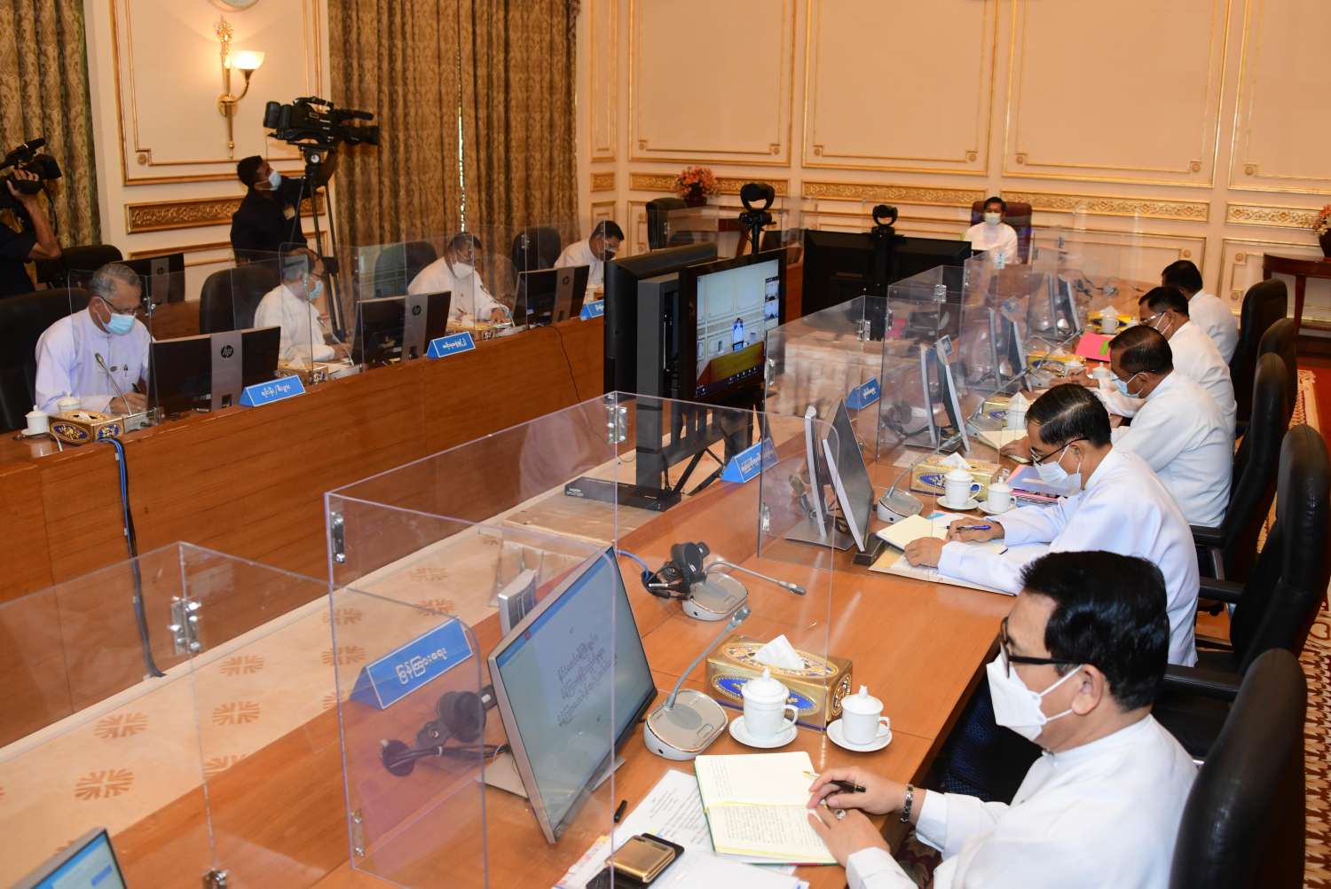ကိုဗစ်-၁၉ ကပ်ရောဂါသည် ကမ္ဘာပေါ်တွင် လက်ရှိအချိန်အထိ ကူးစက်မှုနှုန်းများ မြင့်တက်လျက် ရှိနေသေးကြောင်း၊ အာဆီယံနိုင်ငံများတွင် အင်ဒိုနီးရှားနိုင်ငံသည် ကူးစက်မှုအများဆုံးဖြစ်ပြီး ဖိလစ်ပိုင်နိုင်ငံသည် ကူးစက်မှု ဒုတိယအများဆုံးနိုင်ငံ ဖြစ်ကြောင်း၊ မိမိတို့နိုင်ငံသည် အာဆီယံနိုင်ငံများတွင် ဆဋ္ဌမမြောက်ကူးစက်မှုအများဆုံး နိုင်ငံဖြစ်ပြီး စက်တင်ဘာ ၆ ရက်အထိ ကူးစက်သူ ၄၁၇၀၀၀ ကျော်ရှိပြီး၊ သေဆုံးသူ ၁၅၉၈၅ ဦးရှိကြောင်း၊ ပြီးခဲ့သည့် ဇူလိုင်လဆန်းပိုင်းတွင် ကူးစက်မှုနှုန်းများ ၄၀ ရာခိုင်နှုန်း အထိမြင့်တက်ခဲ့သဖြင့် မိမိတို့အနေဖြင့် ကူးစက်မှုရာခိုင်နှုန်းခေါက်ချိုးအထိ ကျဆင်းစေရန် ကြိုးပမ်းဆောင်ရွက်ခဲ့ရာ ယခုအခါ ၁၀ ရာခိုင်နှုန်းခန့်သာ ကူးစက်မှုရှိသည်ကို တွေ့ရှိရကြောင်း၊ မိမိတို့အနေဖြင့် ရောဂါကူးစက်မှုနှုန်းများကို ထိန်းချုပ်နိုင်ရန်အတွက် ရောဂါပိုး ဆေးစစ်မှုများမှစ၍ အထူးအလေးပေးဆောင်ရွက်ခဲ့ကြောင်း၊ ရောဂါကူးစက်မှုနှုန်းများ ကျဆင်းသွားသော်လည်း လက်ရှိအချိန်တွင် လုံးဝပျောက်ကင်းသွား နိုင်သည့် ရောဂါမဟုတ်သည့်အတွက် ပေါ့ဆ၍မရကြောင်း၊ ဗိုလ်ချုပ်အောင်ဆန်းပြောကြားခဲ့သော မိန့်ခွန်းတွင်ပါရှိသည့် လှေပြိုင်ပွဲဥပမာအတိုင်း ပန်းတိုင်မရောက်ခင်တက်ထောင်သဖြင့် နောက်လှေမှ ကျော်တက်သွား၍ အောင်မြင်မှုနှင့် လွဲချော်နိုင်သည်ကို သင်ခန်းစာယူ၍ မဖြစ်သင့် မဖြစ်ထိုက်သည်များမဖြစ်အောင် သက်ဆိုင်ရာ ပြည်ထောင်စုဝန်ကြီးများနှင့် တိုင်းဒေသကြီးနှင့် ပြည်နယ်ဝန်ကြီးချုပ်များအနေဖြင့် အထူးအလေးထား ဆောင်ရွက်ကြ ရန်လိုကြောင်း။