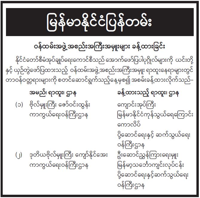 ဦးစီးဌာနနှင့် လုပ်ငန်းများ၏ ကြေညာချက်များ