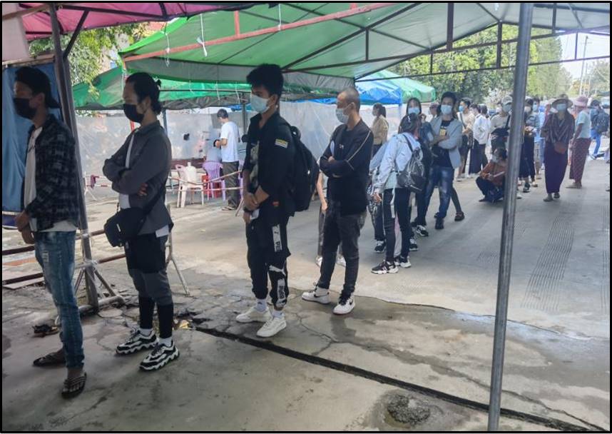 ထိုသို့ လက်ခံရာတွင် သက်ဆိုင်ရာပြည်သူ့ဆေးရုံများမှ ကျန်းမာရေးဆိုင်ရာ တာဝန်ရှိသူများ၊ တပ်မတော်ဆေးတပ်ဖွဲ့ဝင်များကကိုဗစ် - ၁၉ ရောဂါစစ်ဆေးပေး ခြင်း၊ Quarantine ဝင်ရောက် ရမည့် အထောက်အထားစာရွက်စာတမ်းများ ပြုလုပ်ပေးခြင်း၊ ကျန်းမာရေး ဝန်ကြီးဌာန၏ ညွှန်ကြားချက်များကိုရှင်းလင်း ပြောကြားခြင်း တို့ကိုစနစ်တကျဆောင်ရွက်ပေးပြီး တိုင်းစစ်ဌာနချုပ်အသီးသီးမှ တာဝန်ရှိသူများ၊ ဌာနဆိုင်ရာတာဝန်ရှိသူများက လိုအပ်သည်များ ကူညီဆောင်ရွက် ပေးကြသည်။