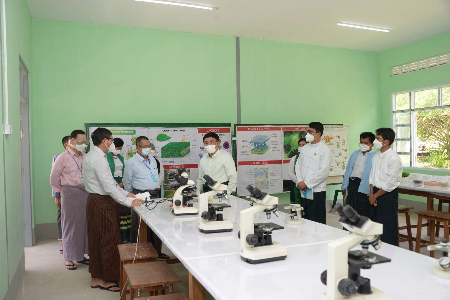 ထို့နောက် ပြည်ထောင်စုဝန်ကြီးက သိပ္ပံလက်တွေ့ခန်းအတွင်း လိုအပ်သည့် မိုက်ခရို စကုတ်၊ ကွန်ပျူတာ၊ သင်ထောက်ကူ ကားချပ်နှင့်လိုအပ်ချက်များ ဖြည့်ဆည်းပေးနိုင်ရေး၊ ကျောင်းများ ပြန်လည်ဖွင့်လှစ်သည့်အခါ ကျောင်းသားကျောင်းသူများအား လိမ္မာရေးခြားရှိရေး၊ ပညာတတ်အောင်သင်ကြားပေးရေး၊ သိပ္ပံဘာသာရပ် လက်တွေ့သင်ကြားမှုများ အမှန်တကယ် တတ်မြောက် အောင် စနစ်တကျဆောင်ရွက်ရေးတို့ကို ဆွေးနွေးမှာကြားကာ ကျောင်းဆောင်အတွင်း သန့်ရှင်းသာယာရေးအတွက် ဆောင်ရွက် ထားမှု အခြေအနေများကို လှည့်လည်ကြည့်ရှု စစ်ဆေးသည်။