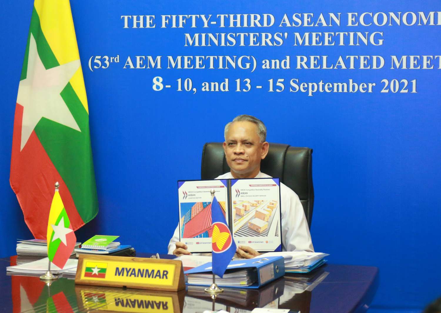 (၅၃) ကြိမ်မြောက် အာဆီယံစီးပွားရေးဝန်ကြီးများ အစည်းအဝေး ဒုတိယနေ့နှင့် အာဆီယံထောက်ပံ့ပို့ဆောင်ရေးကဏ္ဍ၏ ယှဉ်ပြိုင်မှုဆိုင်ရာ ဆန်းစစ်ချက် အစီရင်ခံစာ ထုတ်ပြန်သည့် အခမ်းအနားများကျင်းပ
