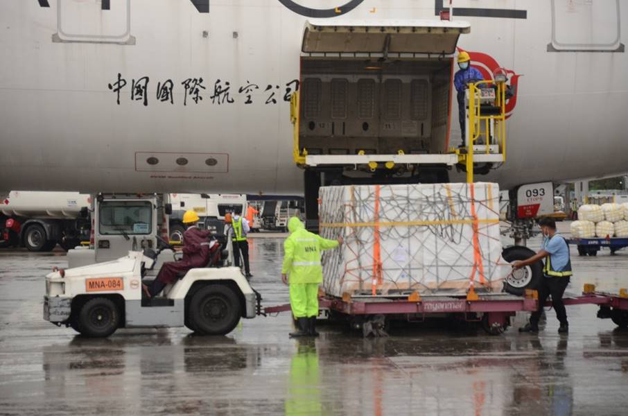 အဆိုပါတရုတ်လေကြောင်းလိုင်း Air China လေယာဉ်ဖြင့် Sinopharm ကိုဗစ်- ၁၉ ကာကွယ်ဆေးများ ရောက်ရှိလာရာ ကျန်းမာရေးဝန်ကြီးဌာန ရန်ကုန်တိုင်းဒေသကြီး ပြည်သူ့ကျန်း မာရေးနှင့်ကုသရေးဦးစီးဌာနမှူး ဒုတိယ ညွှန်ကြားရေးမှုးချုပ်ဒေါက်တာ ထွန်းမင်းနှင့် တာဝန်ရှိ သူများက ရန်ကုန်အပြည်ပြည်ဆိုင်ရာ လေဆိပ်တွင်လက်ခံခဲ့ကြောင်းသိရသည်။