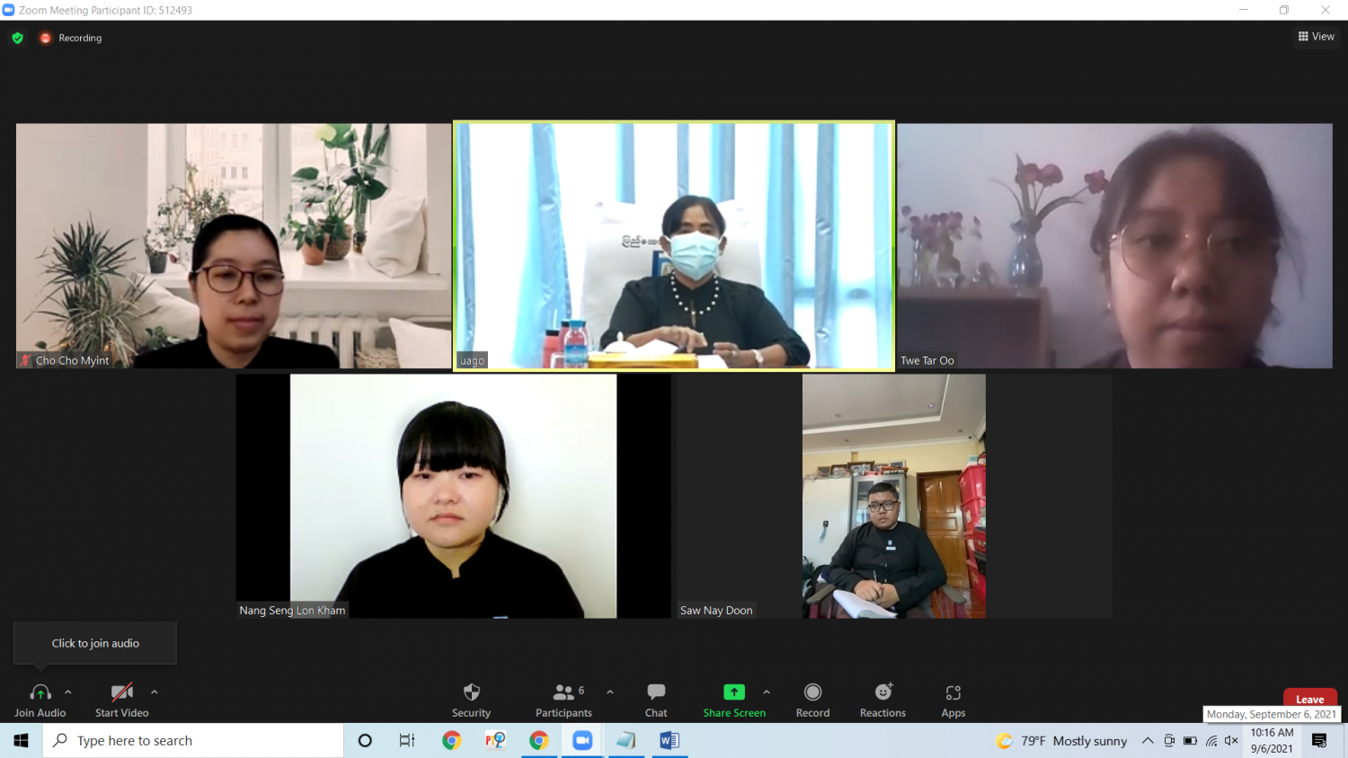 ဥပဒေရေးရာဝန်ကြီးဌာန၊ ပြည်ထောင်စုဝန်ကြီးနှင့် ပြည်ထောင်စုရှေ့နေချုပ် ဒေါက်တာသီတာဦးသည် ဂျပန်နိုင်ငံရှိ ကျူရှူးတက္ကသိုလ်၊ ကိုဘေး တက္ကသိုလ်နှင့် နာဂိုရာတက္ကသိုလ်များသို့ ပညာသင် သွားရောက်မည့် ဥပဒေအရာရှိများအား Online စနစ်ဖြင့် လမ်းညွှန်အမှာစကား ပြောကြား သည်။