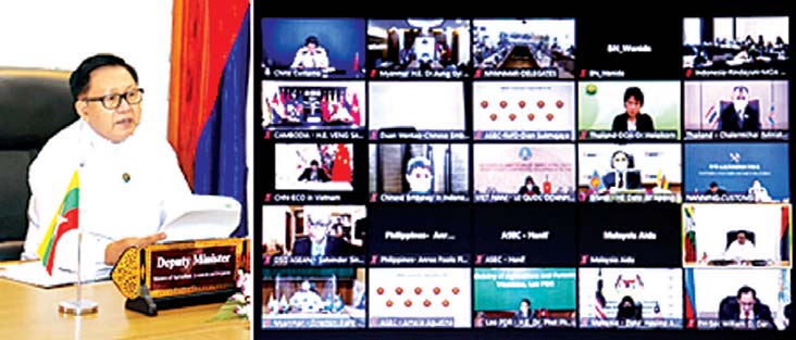 အာဆီယံ-တရုတ် ပိုးမွှားရောဂါကင်းစင်ရေး ပူးပေါင်းဆောင်ရွက်ရေး ဆိုင်ရာ ဝန်ကြီးအဆင့် (၇)ကြိမ်မြောက် အစည်းအဝေးကို ယနေ့ နံနက်ပိုင်းတွင် Video Conference ဖြင့် ကျင်းပရာ အစည်းအဝေးသို့ အာဆီယံ အဖွဲ့ဝင်နိုင်ငံများမှ လယ်ယာစိုက်ပျိုးရေးနှင့် သစ်တောဆိုင်ရာဝန်ကြီးများ၊ အဆင့်မြင့်အရာရှိကြီးများ၊ တရုတ်ပြည်သူ့သမ္မတနိုင်ငံ၊ အကောက်ခွန် အထွေထွေစီမံအုပ်ချုပ်မှု အာဏာပိုင်အဖွဲ့မှ ဒုတိယဝန်ကြီးများနှင့် အဆင့်မြင့်အရာရှိကြီးများ တက်ရောက်ကြပြီး မြန်မာနိုင်ငံမှ စိုက်ပျိုးရေး၊ မွေးမြူရေးနှင့် ဆည်မြောင်း ဝန်ကြီးဌာန ဒုတိယဝန်ကြီး ဒေါက်တာအောင်ကြီးနှင့် အဆင့်မြင့်ကိုယ်စားလှယ်များ တက်ရောက်ကြသည်။