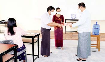 ရေဆင်း စိုက်ပျိုးရေး တက္ကသိုလ်၌ ကျင်းပလျက်ရှိသည့် ဘွဲ့လွန်နှင့် ပါရဂူဘွဲ့ ဒုတိယ နှစ်ဝက် ရေးဖြေစာမေးပွဲတွင် သင်တန်းသူသင်တန်းသား ၁၀၀ ခန့် ဖြေဆိုလျက်ရှိပြီး ဆရာ ဆရာမများနှင့် စာမေးပွဲဖြေဆို လျက်ရှိသည့် သင်တန်းသူ သင်တန်းသားအတွက် ကြက်ဥနှင့် စားသောက်ဖွယ်ရာ များကို ဒုတိယဝန်ကြီးက ပေးအပ်ရာ သက်ဆိုင်ရာ ဆရာ ဆရာမများနှင့် သင်တန်းသူ သင်တန်း သားများက လက်ခံရယူခဲ့ကြသည်။