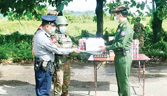 ကိုဗစ်- ၁၉ ရောဂါ ကာကွယ်၊ ထိန်းချုပ်၊ ကုသရေးလုပ်ငန်းများကို အရှိန် အဟုန်မြှင့် ဆောင်ရွက် လျက်ရှိရာ သွားလာမှုကန့်သတ်ချက်များကြောင့် စစ်မှုထမ်း ဟောင်းအဖွဲ့ဝင်များ၊ မြန်မာနိုင်ငံ ရဲတပ်ဖွဲ့ဝင်များ၊ ပြည်သူ့စစ် (ဌာနေ)တပ်ဖွဲ့ဝင်များ၊ ကျန်းမာရေးဝန်ထမ်းများ၊ စေတနာ့ဝန်ထမ်း Volunteer များနှင့် ဒေသခံပြည်သူများ စားရေးအဆင်ပြေစေရေးအတွက် တပ်မတော်နှင့် စေတနာရှင် အလှူရှင်များက စားသောက်ဖွယ်ရာများနှင့် ရောဂါ ကာကွယ်ရေး အထောက်အကူပြုပစ္စည်းများကို ထောက်ပံ့ပေးအပ်လှူဒါန်းလျက်ရှိသည်။
