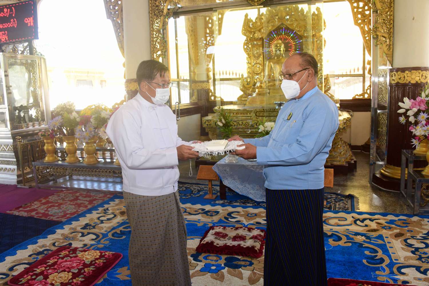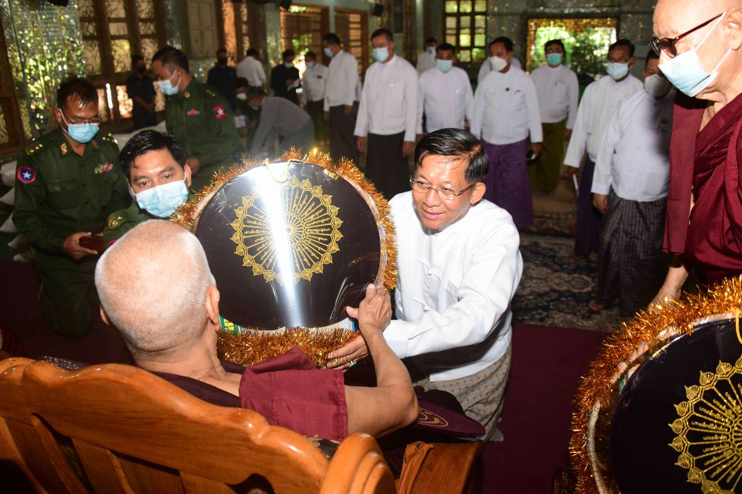 နိုင်ငံတော်စီမံအုပ်ချုပ်ရေးကောင်စီဥက္ကဋ္ဌ၊ နိုင်ငံတော်ဝန်ကြီးချုပ် ဗိုလ်ချုပ်မှူးကြီး မင်းအောင်လှိုင် နိုင်ငံတော်သံဃမဟာနာယကအဖွဲ့ ဥက္ကဋ္ဌ၊ ဗန်းမော်ဆရာတော်ဘုရားကြီးနှင့် နိုင်ငံတော်ဩဝါဒါစရိယ၊ မဟာဝိဇိတာရုံကျောင်းတိုက် ပဓာနနာယကဆရာတော်တို့အား သွားရောက်ဖူးမြော်ကြည်ညို၍ လှူဖွယ်ပစ္စည်းများ ဆက်ကပ်လှူဒါန်း၊ ဗုဒ္ဓဘာသာ သာသနာတော်ထွန်းကားပြန့်ပွားရေးဆိုင်ရာများ တင်ပြလျှောက်ထား