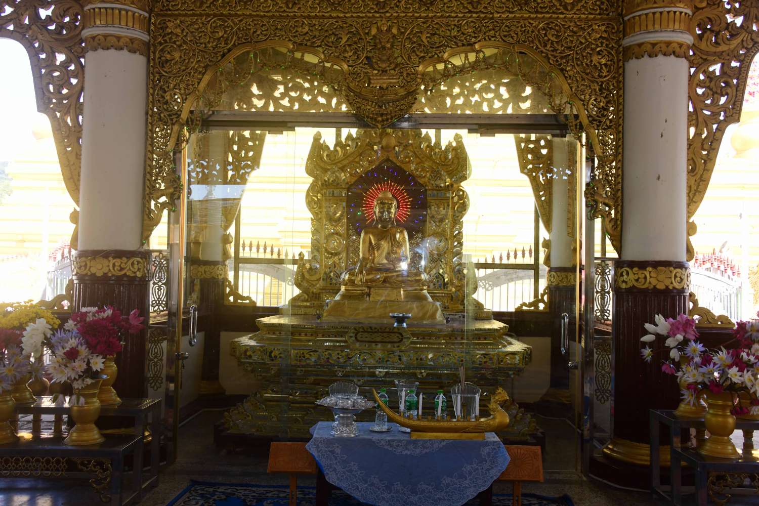 ထို့နောက် နိုင်ငံတော်စီမံအုပ်ချုပ်ရေးကောင်စီဥက္ကဋ္ဌ၊ နိုင်ငံတော်ဝန်ကြီးချုပ်နှင့် အဖွဲ့ဝင်များသည် ပဉ္စမသင်္ဂါယနာတင် မဟာလောကမာရဇိန်စေတီ ကုသိုလ်တော် မြတ်စွာဘုရားသို့ ရောက်ရှိကြရာ ဂေါပကအဖွဲ့ ဥက္ကဋ္ဌ ဦးကျော်ဝင်းနှင့် အဖွဲ့ဝင်များက ကြိုဆိုနှုတ်ဆက်ကြသည်။ ယင်းနောက် စေတီတော်မြတ်ကြီးအတွင်းရှိ ဗုဒ္ဓရုပ်ပွားတော်မြတ်အား ဖူးမြော်ကြည်ညိုကာ ပန်း၊ ရေချမ်း၊ ဆီမီး ကပ်လှူပူဇော်သည်။ ထို့နောက် ဘုရားကြီး ပြုပြင်မွမ်းမံထိန်းသိမ်းနိုင်ရေး အတွက် ဘက်စုံအလှူငွေများ ပေးအပ်လှူဒါန်းရာ ဂေါပကအဖွဲ့ဥက္ကဋ္ဌက လက်ခံရယူပြီး ဓမ္မလက်ဆောင်များ ပြန်လည်ပေးအပ်သည်။ ထို့နောက် နိုင်ငံတော်စီမံအုပ်ချုပ်ရေး ကောင်စီ ဥက္ကဋ္ဌ၊ နိုင်ငံတော်ဝန်ကြီးချုပ်သည် ဘုရားကြီး ဧည့်သည်တော်မှတ်တမ်းစာအုပ်တွင် လက်မှတ် ရေးထိုး ပူဇော်သည်။