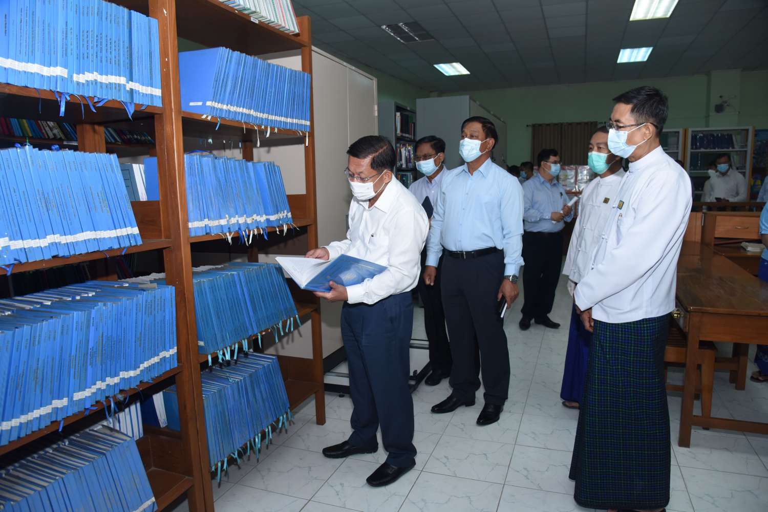 ယင်းနောက်နိုင်ငံတော်စီမံအုပ်ချုပ်ရေးကောင်စီဥက္ကဋ္ဌ နိုင်ငံတော်ဝန်ကြီးချုပ် နှင့်အဖွဲ့ဝင်များသည် တက္ကသိုလ်အတွင်းရှိ သင်ကြားရေး၊ စီမံရေး တို့အား အရည် အသွေးစိစစ်ခန့်ခွဲရေးရုံး၊ စာကြည့်တိုက်တို့အား ကြည့်ရှုခဲ့ပြီး Full Mission Engine Room Simulator ဌာနတို့တွင် အင်ဂျင်နှင့် ဆက်စပ်ပစ္စည်းများအား ကျွမ်းကျင်စွာ မောင်နှင်နိုင်ရေး၊ အရေးပေါ်အခြေအနေအား ဖြေရှင်းဆောင်ရွက်နိုင်ရေး လေ့ကျင့် ဆောင်ရွက်ပေးမှု အခြေအနေများအား လှည့်လည်ကြည့်ရှုစစ်ဆေးရာ ပါမောက္ခချုပ်နှင့် တာဝန်ရှိသူများက လိုက်လံရှင်းလင်းပြခဲ့ပြီး နိုင်ငံတော်စီမံအုပ်ချုပ်ရေး ကောင်စီဥက္ကဋ္ဌ နိုင်ငံတော်ဝန်ကြီးချုပ်က Simulator များဖြင့် လေ့ကျင့်ပေးရာတွင် ရေယာဉ်ငယ်မှ ပင်လယ်သွား သင်္ဘောကြီးများအထိ အဆင့်ဆင့် အခြေခံမှ စ၍ သင်ကြားလေ့ကျင့်ပေးရန် လိုအပ်သည့် အခြေအနေများနှင့် အခြားလိုအပ်သည်များကို ဆွေးနွေး ပြောကြားခဲ့သည်။