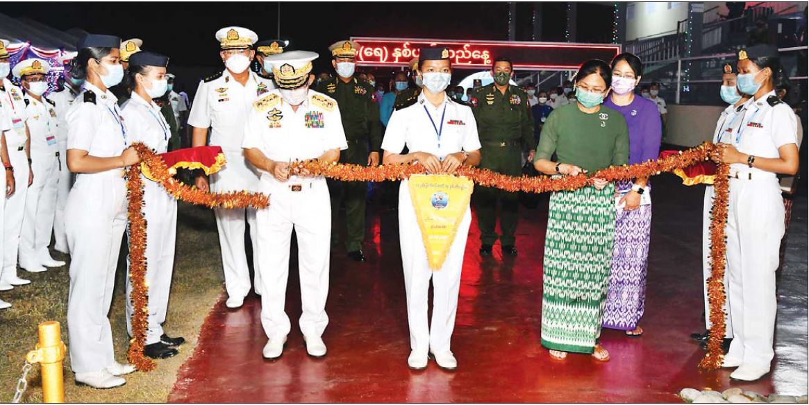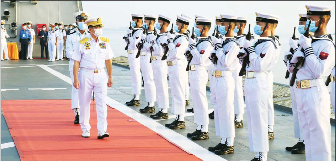 ၎င်းနောက် နိုင်ငံတော်စီမံအုပ်ချုပ်ရေးကောင်စီဥက္ကဋ္ဌ တပ်မတော်ကာကွယ်ရေး ဦးစီးချုပ်နှင့်အဖွဲ့ဝင် များသည် တပ်တော်ဝင်စစ်ရေယာဉ်များဖြစ်သည့် ရေငုပ်သင်္ဘော စစ်ရေယာဉ်(မင်းရဲကျော်ထင်) အပါအဝင် ကမ်းလွန်ရေယာဉ်တစ်စီး၊ မြစ်တွင်းသွား ကင်းလှည့် ရေယာဉ် ၂ စီးနှင့် မြစ်တွင်းအမြန်သွား ကင်းလှည့်ရေယာဉ် ၂ စီး တို့အား လှည့်လည်ကြည့်ရှုကြရာ တာဝန်ရှိသူများ က လိုက်လံရှင်းလင်း ပြသကြသည်။