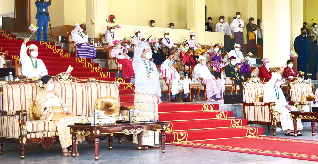 ထို့နောက် နိုင်ငံတော်စီမံအုပ်ချုပ်ရေးကောင်စီဥက္ကဋ္ဌ နိုင်ငံတော်ဝန်ကြီးချုပ်နှင့် ဇနီးတို့သည် တိုင်းဒေသကြီးနှင့် ပြည်နယ်များအလိုက် ကိုယ်စားပြု အလှပြယာဉ်များနှင့် ဂုဏ်ပြုအကအဖွဲ့ များအား ရင်းရင်းနှီးနှီးလက်ပြနှုတ်ဆက်ခဲ့ကြောင်း သတင်းရရှိသည်။