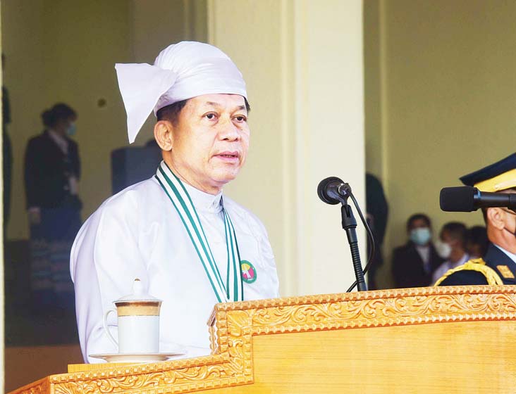 ယင်းနောက် နိုင်ငံတော်စီမံအုပ်ချုပ်ရေးကောင်စီဥက္ကဋ္ဌ နိုင်ငံတော်ဝန်ကြီးချုပ် ဗိုလ်ချုပ်မှူးကြီး မဟာသရေစည်သူ မင်းအောင်လှိုင်ကို တပ်မတော်(ကြည်း) ကိုယ်စားပြုအလံတော်ဖွဲ့၊ တပ်မတော် (ကြည်း) ကိုယ်စားပြုတပ်ခွဲ၊ လွှတ်တော်ကိုယ်စားပြုတပ်ခွဲ၊ ကာကွယ်ရေး ဝန်ကြီးဌာန ကိုယ်စားပြုတပ်ခွဲ၊ ပြည်ထဲရေးဝန်ကြီးဌာန ကိုယ်စားပြုတပ်ခွဲ၊ တပ်မတော်ရေ ကိုယ်စားပြုအလံတော်အဖွဲ့၊ တပ်မတော်(ရေ) ကိုယ်စားပြုတပ်ခွဲ၊ နိုင်ငံခြားရေးဝန်ကြီးဌာန ကိုယ်စားပြုတပ်ခွဲ၊ မြန်မာနိုင်ငံစစ်မှုထမ်းဟောင်းအဖွဲ့ ကိုယ်စားပြုတပ်ခွဲ၊ တပ်မတော်(ကြည်း) စစ်တီးဝိုင်းအဖွဲ့၊ တပ်မတော်(လေ) အလံတော်အဖွဲ့၊ တပ်မတော်(လေ) ကိုယ်စားပြုတပ်ခွဲ၊ နယ်စပ်ရေးရာဝန်ကြီးဌာန ကိုယ်စားပြုတပ်ခွဲ၊ စီမံကိန်းနှင့်ဘဏ္ဍာရေးဝန်ကြီးဌာန ကိုယ်စားပြု တပ်ခွဲ၊ ဥပဒေရေးရာဝန်ကြီးဌာန ကိုယ်စားပြုတပ်ခွဲ၊ မြန်မာနိုင်ငံရဲတပ်ဖွဲ့ အလံတော်အဖွဲ့၊ မြန်မာနိုင်ငံရဲတပ်ဖွဲ့ ကိုယ်စားပြုတပ်ခွဲ၊ ပြန်ကြားရေးဝန်ကြီးဌာန ကိုယ်စားပြုတပ်ခွဲ၊ သာသနာရေးနှင့် ယဉ်ကျေးမှုဝန်ကြီးဌာန ကိုယ်စားပြုတပ်ခွဲ၊ မြန်မာနိုင်ငံရဲတပ်ဖွဲ့ တီးဝိုင်းတပ်ခွဲ၊ မြန်မာနိုင်ငံ မီးသတ်တပ်ဖွဲ့ အလံတော်အဖွဲ့၊ မြန်မာနိုင်ငံမီးသတ်တပ်ဖွဲ့ ကိုယ်စားပြုတပ်ခွဲ၊ စိုက်ပျိုးရေး မွေးမြူရေးနှင့် ဆည်မြောင်းဝန်ကြီးဌာန ကိုယ်စားပြုတပ်ခွဲ၊ သမဝါယမနှင့် ကျေးလက်ဖွံ့ဖြိုးရေး ဝန်ကြီးဌာန ကိုယ်စားပြုတပ်ခွဲ၊ ပို့ဆောင်ရေးနှင့် ဆက်သွယ်ရေး ဝန်ကြီးဌာန ကိုယ်စားပြုတပ်ခွဲ၊ စီမံကိန်းနှင့်ဘဏ္ဍာရေး ဝန်ကြီးဌာန ကိုယ်စားပြုအလံတော်အဖွဲ့၊ လူဝင်မှုကြီးကြပ်ရေးနှင့် ပြည်သူ့အင်အား ဝန်ကြီးဌာန ကိုယ်စားပြုတပ်ခွဲ၊ သယံဇာတနှင့် သဘာဝပတ်ဝန်းကျင် ထိန်းသိမ်းရေးဝန်ကြီးဌာန ကိုယ်စားပြုတပ်ခွဲ၊ လျှပ်စစ်နှင့်စွမ်းအင် ဝန်ကြီးဌာန ကိုယ်စားပြုတပ်ခွဲ၊ မြန်မာနိုင်ငံမီးသတ်တပ်ဖွဲ့တီးဝိုင်း၊ ပို့ဆောင်ရေးနှင့် ဆက်သွယ်ရေးဝန်ကြီးဌာန အလံတော်အဖွဲ့၊ စက်မှုဝန်ကြီးဌာန ကိုယ်စားပြုတပ်ခွဲ၊ အလုပ်သမား ဝန်ကြီးဌာန ကိုယ်စားပြုတပ်ခွဲ၊ စီးပွားရေးနှင့် ကူးသန်းရောင်းဝယ်ရေး ဝန်ကြီးဌာနကိုယ်စားပြု တပ်ခွဲ၊ ပညာရေးဝန်ကြီးဌာန ကိုယ်စားပြုတပ်ခွဲ၊ သယံဇာတနှင့် သဘာဝပတ်ဝန်းကျင် ထိန်းသိမ်းရေးဝန်ကြီးဌာန အလံတော်အဖွဲ့၊ ကျန်းမာရေးဝန်ကြီးဌာန ကိုယ်စားပြုတပ်ခွဲ၊ သိပ္ပံနှင့်နည်းပညာ ဝန်ကြီးဌာန ကိုယ်စားပြုတပ်ခွဲ၊ အားကစားနှင့်လူငယ်ရေးရာ ဝန်ကြီးဌာန ကိုယ်စားပြုတပ်ခွဲ၊ အ.ထ.က(၁)ကျောင်းသား၊ ကျောင်းသူများ၏ ဘင်ခရာအဖွဲ့၊ ဆောက်လုပ်ရေးဝန်ကြီး ဌာန အလံတော်အဖွဲ့၊ ဆောက်လုပ်ရေးဝန်ကြီးဌာန ကိုယ်စားပြုတပ်ခွဲ၊ လူမှုဝန်ထမ်း ကယ်ဆယ်ရေးနှင့် ပြန်လည်နေရ