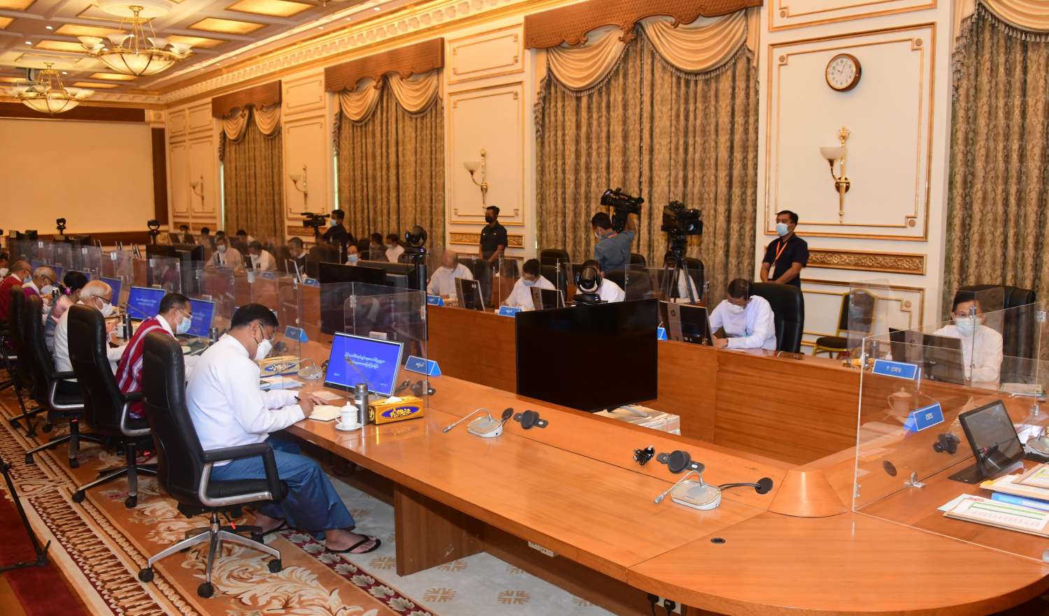 မဟာသင်္ကြန်ကိစ္စနှင့်ပတ်သက်၍ ကိုဗစ်-၁၉ ရောဂါဖြစ်ပွားမှုနှင့် နိုင်ငံရေး အခြေအနေ များကြောင့် ယခင်နှစ်က အကန့်အသတ်ဖြင့်သာခွင့်ပြုခဲ့ရကြောင်း၊ လက်ရှိအခြေအနေအရ မဟာသင်္ကြန်ကျင်းပနိုင်ရန်အတွက် အတိုင်းအတာတစ်ခုအထိ ခွင့်ပြုပေးသွားရန် စီမံထားကြောင်း၊ သင်္ကြန်ကာလအတွင်း လုံခြုံရေးစနစ်တကျဆောင်ရွက်၍ ပြည်သူများ လွတ်လွတ်လပ်လပ် ပျော်ရွှင်နိုင်ရေး တာဝန်ရှိသူများအနေဖြင့် စနစ်တကျဖြင့် စီမံဆောင်ရွက်ကြရန်လိုကြောင်း၊ မဟာသင်္ကြန်ကျင်းပမှုနှင့် ပတ်သက်၍ ကောင်စီဝင်များ အနေဖြင့်လည်း အကြံပြု ဆွေးနွေးကြစေလိုကြောင်း၊ မဟာသင်္ကြန်ကာလ၊ သီတင်းကျွတ် ကာလနှင့် တန်ဆောင်တိုင်ကာလများသည် မြန်မာတို့၏ အလေးအမြတ်ထားသည့် ကာလများဖြစ်ကြကြောင်း၊ အဆိုပါကာလများတွင် ပြည်သူများ လွတ်လပ် အေးချမ်းစွာဖြင့် ဖြတ်သန်းနိုင်ရန်လိုကြောင်း၊ ကိုဗစ်-၁၉ ဖြစ်ပွားမှုနှင့် နိုင်ငံရေး အခြေအနေများကိုလည်း ထည့်သွင်းစဉ်းစား၍ ဆောင်ရွက်ကြရန်လိုကြောင်း ပြောကြားသည်။