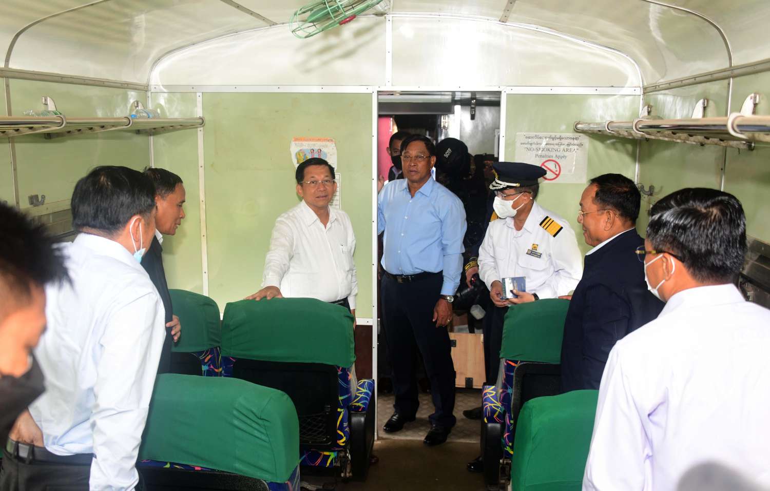 ထို့နောက် နိုင်ငံတော်စီမံအုပ်ချုပ်ရေးကောင်စီဥက္ကဋ္ဌ နိုင်ငံတော်ဝန်ကြီးချုပ်နှင့် အဖွဲ့ဝင်များသည် ပြင်ဦးလွင်ဘူတာကြီးမှ ပြင်ဦးလွင်-အနီးစခန်း-သုံးတောင်-ဇီးပင်ကြီး မီးရထားခရီးစဉ်အဖြစ် ဇီးပင်ကြီး ဘူတာသို့ လိုက်ပါစီးနင်းခဲ့ပြီး မီးရထားလမ်းကြောင်းတစ်လျှောက် တောင်ပေါ်အပန်းဖြေမြို့၊ ပြင်ဦးလွင်ဒေသ၏ အေးမြပြီး သာယာလှပ သည့် ရေမြေတောတောင်သဘာဝရှုခင်းများ၊ စိမ်းလန်းစိုပြေသည့် ရာသီသီးနှံစိုက်ခင်း များ၊ ဒေသခံပြည်သူလူထုတို့၏ လှုပ်ရှားသွားလာနေမှုများကို ကြည့်ရှုသည်။ ထို့နောက် မီးရထား သယ်ယူပို့ဆောင်ရေးလုပ်ငန်းနှင့် မီးရထားအပန်းဖြေခရီးစဉ်များ ဖွံ့ဖြိုးတိုးတက်ရေးအတွက် ရထားလမ်းများနှင့် ရထားတွဲများကို အဆင့်မြှင့်တင်ဆောင်ရွက်ပေးနိုင်မည့် အခြေအနေများ၊ မီးရထားလမ်းကြောင်းတစ်လျှောက် သန့်ရှင်းသာယာလှပ၍ မျက်စိပသာဒဖြစ်အောင် ဆောင်ရွက်သွားရန်လိုအပ်သည့် အခြေအနေများနှင့် ပတ်သက်၍ တာဝန်ရှိသူများအား ဆွေးနွေးမှာကြားသည်။
