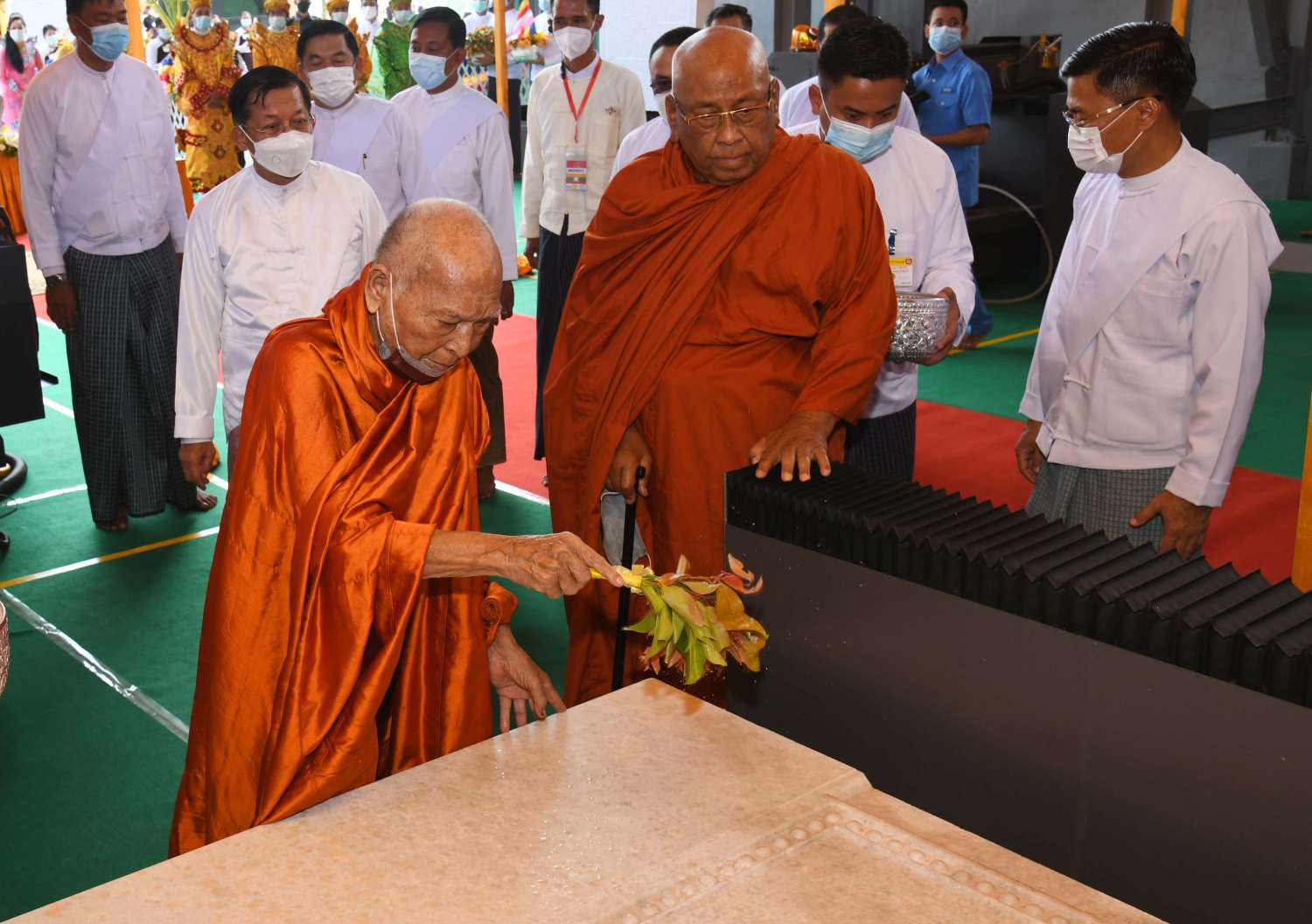 ထို့နောက် နိုင်ငံတော်စီမံအုပ်ချုပ်ရေးကောင်စီဥက္ကဋ္ဌနှင့် အခမ်းအနား တက်ရောက်လာကြသူများသည် ရတနတ္တယပူဇာ ဂါထာတော်နှင့် သဗ္ဗသင်္ဂါဟက မေတ္တာပို့လင်္ကာနှစ်ပိုဒ်ကို သံပြိုင်ညီညာသုံးကြိမ်ရွတ်ဆိုပွားများ ပူဇော်ကြသည်။
