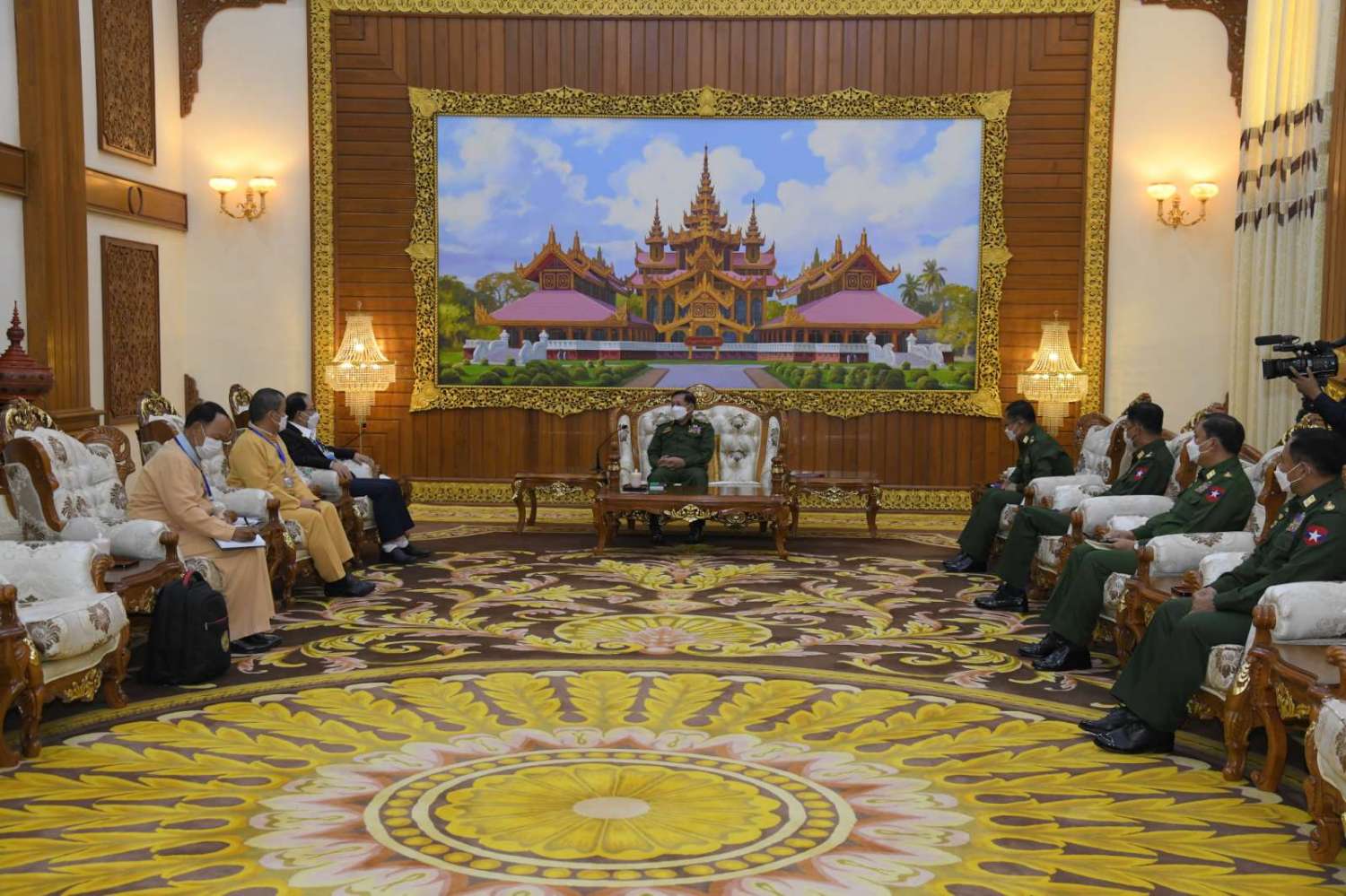 နိုင်ငံတော်စီမံအုပ်ချုပ်ရေးကောင်စီဥက္ကဋ္ဌ တပ်မတော်ကာကွယ်ရေးဦးစီးချုပ် ဗိုလ်ချုပ်မှူးကြီး မင်းအောင်လှိုင်သည် ရှမ်းပြည်ပြန်လည်ထူထောင်ရေးကောင်စီ RCSS (SSA) အဖွဲ့ဥက္ကဋ္ဌ စဝ်ယွက်စစ် ဦးဆောင်သည့် ငြိမ်းချမ်းရေး ကိုယ်စားလှယ် အဖွဲ့အား ယနေ့နံနက်ပိုင်းတွင် နေပြည်တော်ရှိ ဘုရင့်နောင်ရိပ်သာ ဧည့်ခန်းမဆောင်၌ တွေ့ဆုံ၍ ငြိမ်းချမ်းရေးဆိုင်ရာ ကိစ္စရပ်များ ဆွေးနွေးသည်။