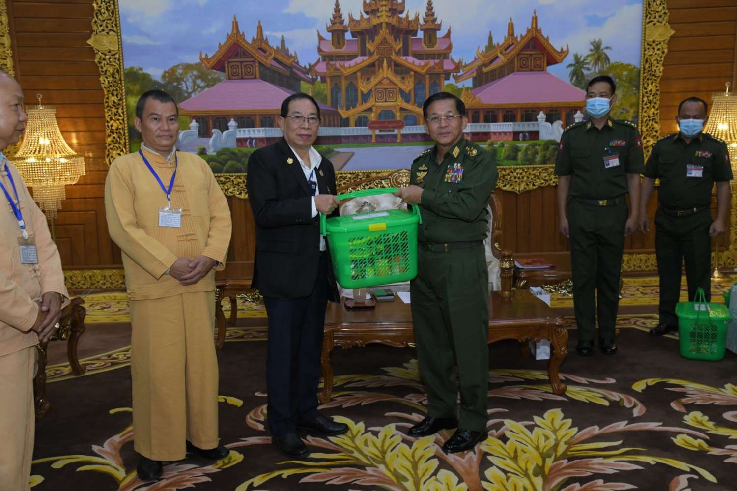 တွေ့ဆုံပွဲအပြီးတွင် နိုင်ငံတော်စီမံအုပ်ချုပ်ရေးကောင်စီဥက္ကဋ္ဌ တပ်မတော်ကာကွယ်ရေး ဦးစီးချုပ်နှင့် ရှမ်းပြည်ပြန်လည်ထူထောင်ရေးကောင်စီ RCSS(SSA) အဖွဲ့ဥက္ကဋ္ဌ တို့သည် အမှတ်တရလက်ဆောင်ပစ္စည်းများ အပြန်အလှန်ပေးအပ်ခဲ့ပြီး အမှတ်တရ စုပေါင်း ဓာတ်ပုံရိုက်ကြသည်။