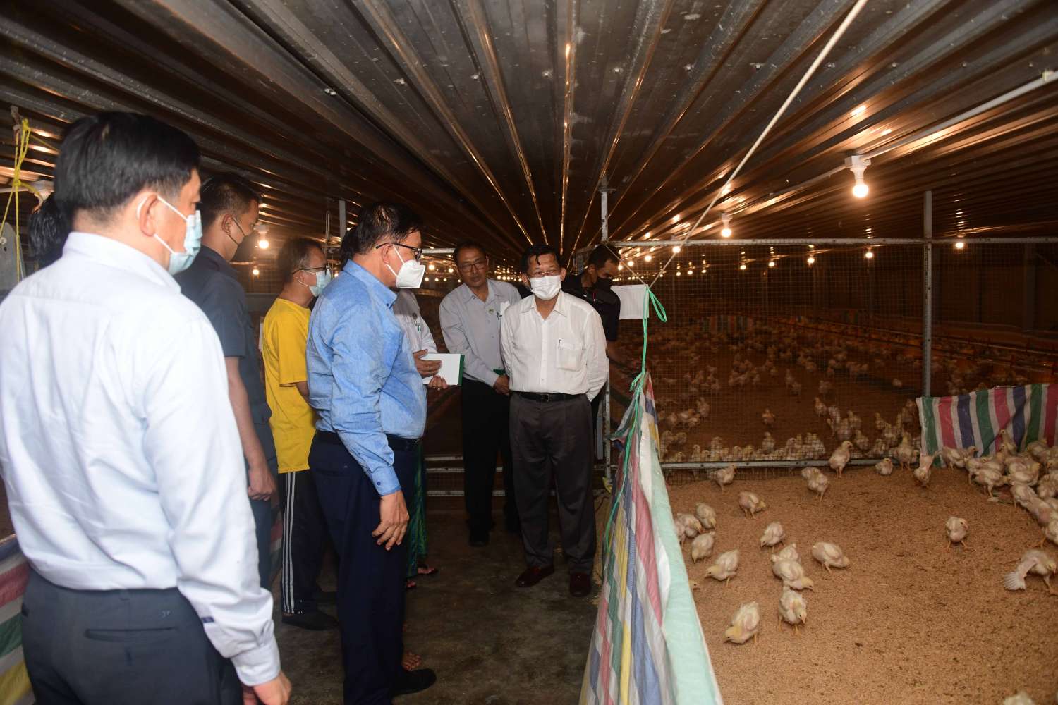 ယင်းနောက် နိုင်ငံတော်စီမံအုပ်ချုပ်ရေးကောင်စီဥက္ကဋ္ဌ နိုင်ငံတော်ဝန်ကြီးချုပ်နှင့် အဖွဲ့ဝင်များသည် စိုက်ပျိုးမွေးမြူရေးဇုန်အတွင်း လှည့်လည်၍ စိုက်ပျိုးရေးဦးစီးဌာနနှင့် စိမ်းလန်းသမဝါယမအဖွဲ့တို့ ပူးပေါင်းဆောင်ရွက်သည့် ဓာတုကင်းလွတ် ဟင်းသီးဟင်းရွက်စိုက်ခင်းနှင့် CJ Feed Myanmar ကြက်မွေးမြူရေးလုပ်ငန်းတို့၏ လုပ်ငန်းဆောင်ရွက်နေမှု အခြေအနေများကို လိုက်လံကြည့်ရှုစစ်ဆေးရာ လုပ်ငန်းအလိုက် တာဝန်ရှိသူများက ရှင်းလင်းတင်ပြခဲ့ကြောင်းနှင့် နိုင်ငံတော်စီမံအုပ်ချုပ်ရေးကောင်စီဥက္ကဋ္ဌ နိုင်ငံတော်ဝန်ကြီးချုပ်က သိရှိလိုသည်များအား ပြန်လည်မေးမြန်းဆွေးနွေးခဲ့ကြောင်း သတင်းရရှိသည်။