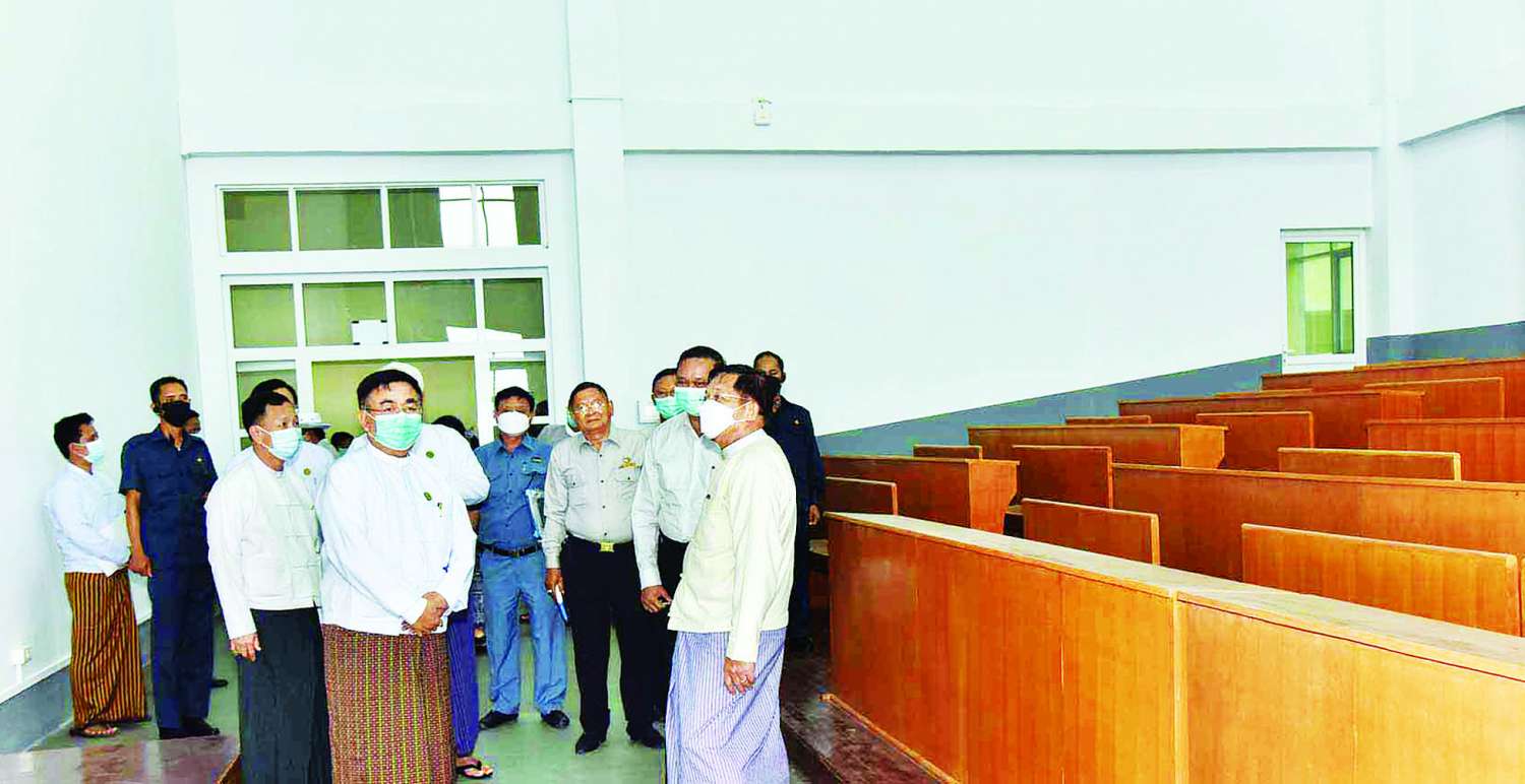 ထို့နောက် နိုင်ငံတော်စီမံအုပ်ချုပ်ရေးကောင်စီဥက္ကဋ္ဌ နိုင်ငံတော်ဝန်ကြီးချုပ်နှင့် အဖွဲ့ဝင်များသည် Naypyitaw State Academy Main အဆောက်အဦကြီးအတွင်း လှည့်လည်၍ စာသင်ခန်းမဆောင်များ၊ သင်ထောက်ကူပြု ပစ္စည်းများ ခင်းကျင်းထားရှိမှု၊ Hall ခန်းမကြီး တည်ဆောက်ထားရှိမှုတို့ကို ကြည့်ရှုစစ်ဆေးခဲ့ပြီး ကုန်ကျစရိတ် သက်သာပြီး အဆင့်မီစေရန်၊ ဂုဏ်သိက္ခာနှင့် လျော်ညီမှုရှိစေရန် စနစ်တကျ တွက်ချက် ဆောင်ရွက်သွားရန် လိုအပ်သည့် အခြေအနေများနှင့်ပတ်သက်၍ တာဝန်ရှိသူများအား လမ်းညွှန်မှာကြားသည်။