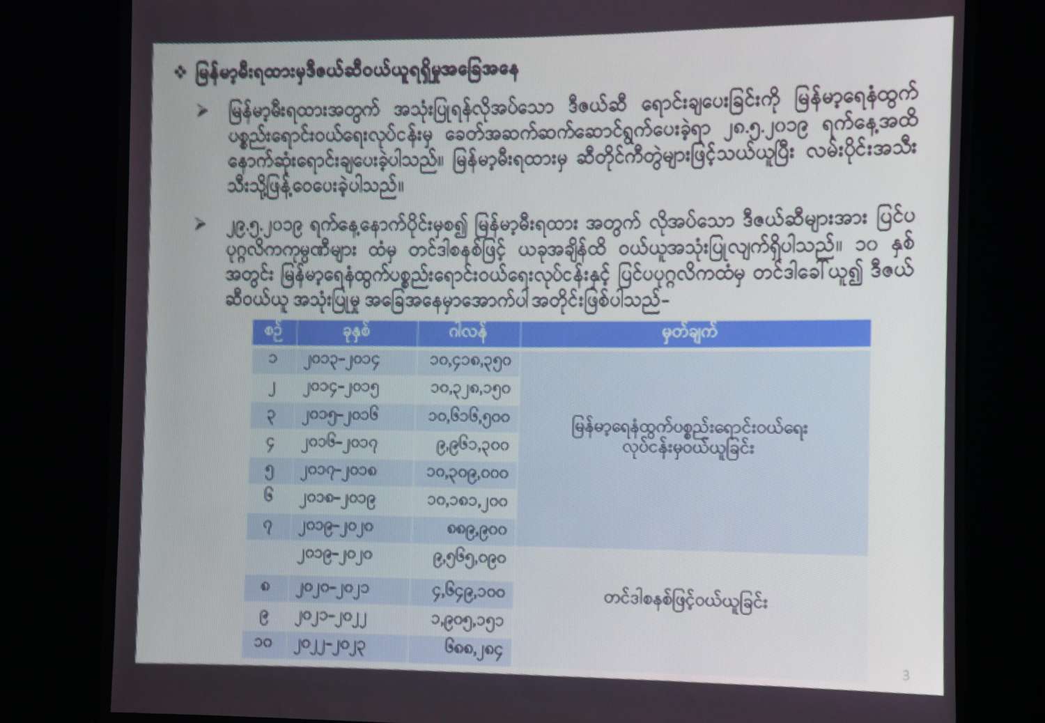 ဦးစွာ အစည်းအဝေးခန်းမတွင် ပို့ဆောင်ရေးနှင့်ဆက်သွယ်ရေးဝန်ကြီးဌာန ပြည်ထောင်စုဝန်ကြီး ဗိုလ်ချုပ်ကြီး တင်အောင်စန်း၊ လျှပ်စစ်စွမ်းအားဝန်ကြီးဌာနနှင့် စွမ်းအင်ဝန်ကြီးဌာန ပြည်ထောင်စုဝန်ကြီး ဦးသောင်းဟန်နှင့် တာဝန်ရှိသူတို့က ပင်မသိုလှောင် ဖြန့်ဖြူးရေးဌာနကြီး၊ ရန်ကုန်(ဓနိတော)၏ သမိုင်းအကျဉ်း၊ သိုလှောင်နိုင်မှုအခြေအနေများ၊ ရာသီဥတုကြောင့် ဓနိတောဆိပ်ခံတံတား ပျက်စီးခဲ့ရမှုနှင့် ပြန်လည်ပြင်ဆင် ဆောင်ရွက်နေမှုအခြေအနေများ၊ ပို့ဆောင်ရေးနှင့်ဆက်သွယ်ရေးဝန်ကြီးဌာန၊ မြန်မာ့မီးရထားမှ သိုလှောင်ကန်များနှင့် ဆိပ်ခံဘောတံတား ငှားရမ်းသုံးစွဲခဲ့မှုအခြေအနေများ၊ မြန်မာ့မီးရထားမှ ဒီဇယ်ဆီဝယ်ယူရရှိမှု အခြေအနေများ၊ မြန်မာ့ဆိပ်ကမ်း အာဏာပိုင်ဝန်ထမ်းအိမ်ရာများ ဆောက်လုပ်ထားရှိမှု အခြေအနေများကို ရှင်းလင်းတင်ပြရာ နိုင်ငံတော်စီမံအုပ်ချုပ်ရေးကောင်စီဥက္ကဋ္ဌ နိုင်ငံတော်ဝန်ကြီးချုပ်က ဆိပ်ကမ်းနယ်မြေဖြစ်၍ စနစ်တကျရှိစေရေးနှင့် လိုအပ်သည်များကို မှာကြားသည်။