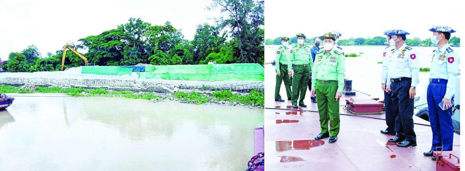 ထို့နောက် နိုင်ငံတော်စီမံအုပ်ချုပ်ရေးကောင်စီဥက္ကဋ္ဌ တပ်မတော်ကာကွယ်ရေး ဦးစီးချုပ် ဗိုလ်ချုပ်မှူးကြီး မင်းအောင်လှိုင်နှင့် အဖွဲ့ဝင်များသည် ပုသိမ်မြို့၊ အမှတ်(၁)ရပ်ကွက်၊ ကမ်းနားလမ်းတွင် မြစ်ကြမ်းခင်းမြေသားစွမ်းအင်မြှင့်တင်ခြင်း လုပ်ငန်း ဆောင်ရွက်နေမှု အခြေအနေများကို သွားရောက်ကြည့်ရှုစစ်ဆေးရာ ရှင်းလင်းဆောင်တွင် ကာကွယ်ရေးဦးစီးချုပ်ရုံး(ကြည်း)စစ်အင်ဂျင်နီယာ ညွှန်ကြားရေးမှူးရုံး ညွှန်ကြားရေးမှူး ဗိုလ်ချုပ်မျိုးသန့်၊ ပို့ဆောင်ရေးနှင့်ဆက်သွယ်ရေးဝန်ကြီးဌာန၊ ရေအရင်းအမြစ်နှင့် မြစ်ချောင်းများဖွံ့ဖြိုးတိုးတက်ရေးဦးစီးဌာန ညွှန်ကြားရေးမှူးချုပ် ဦးဝင်းလှိုင်တို့က မြစ်ကြမ်းခင်းမြေသား စွမ်းအင်မြှင့်တင်ခြင်း လုပ်ငန်းဆောင်ရွက်နေမှုအခြေအနေများကို ရှင်းလင်းတင်ပြကြသည်။