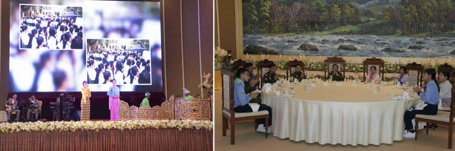 ယင်းနောက် နိုင်ငံတော်စီမံအုပ်ချုပ်ရေးကောင်စီဥက္ကဋ္ဌ တပ်မတော်ကာကွယ်ရေးဦးစီးချုပ်နှင့် ဇနီးတို့က အခမ်းအနားတက်ရောက်လာကြသူများ၊ ဆုရစစ်သည်များ၊ ကျောင်းသား၊ ကျောင်းသူများ၊ မိဘများနှင့် ဆရာ၊ ဆရာမများအား စားသောက်ဖွယ်ရာများဖြင့် တည်ခင်းဧည့်ခံသည်။ စားသောက်ဖွယ်ရာများ သုံးဆောင်နေစဉ်အတွင်း မြဝတီခေတ်ပေါ်တေးဂီတအဖွဲ့က လူငယ်ဂုဏ်ပြုတေးသီချင်းများဖြင့် သီဆို ဖျော်ဖြေကြသည်။