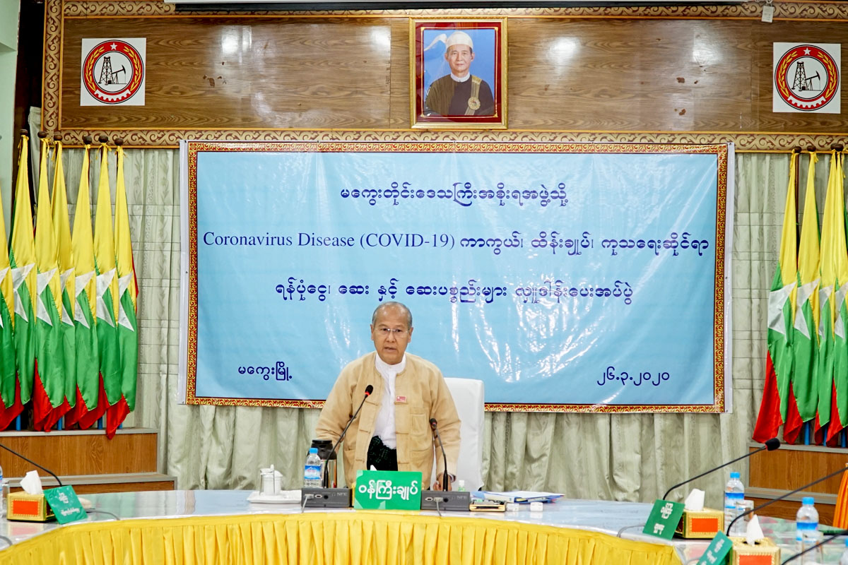 ဆက်လက်ပြီး မကွေးတိုင်းဒေသကြီး ကိုရိုနာဗိုင်းရပ်စ် ကာကွယ်၊ ထိန်းချုပ်၊ကုသရေးအတွက် လုပ်ငန်းရှင်များ၊ အသင်းအဖွဲ့များ ကုမ္ပဏီများ၊ ကိုယ်ပိုင်ကျောင်း၊ ဟိုတယ် စသည့် လုပ်ငန်းရှင် အလှူရှင်များက တိုင်းဒေသကြီး ဝန်ကြီးချုပ်ထံ ပေးအပ်လှူဒါန်းရာ အလှူငွေစုစုပေါင်း (၃၂၄၅၀၀၀ဝိ/-) (သုံးရာနှစ် ဆယ့်လေးသိန်းငါးသောင်းကျပ်)လက်ခံရရှိခဲ့ပြီး တိုင်းဒေသကြီး ဝန်ကြီးချုပ်က ဂုဏ်ပြုမှတ်တမ်းလွှာများ ပြန်လညပေးအပ်ခဲ့ကြောင်း သိရသည်။