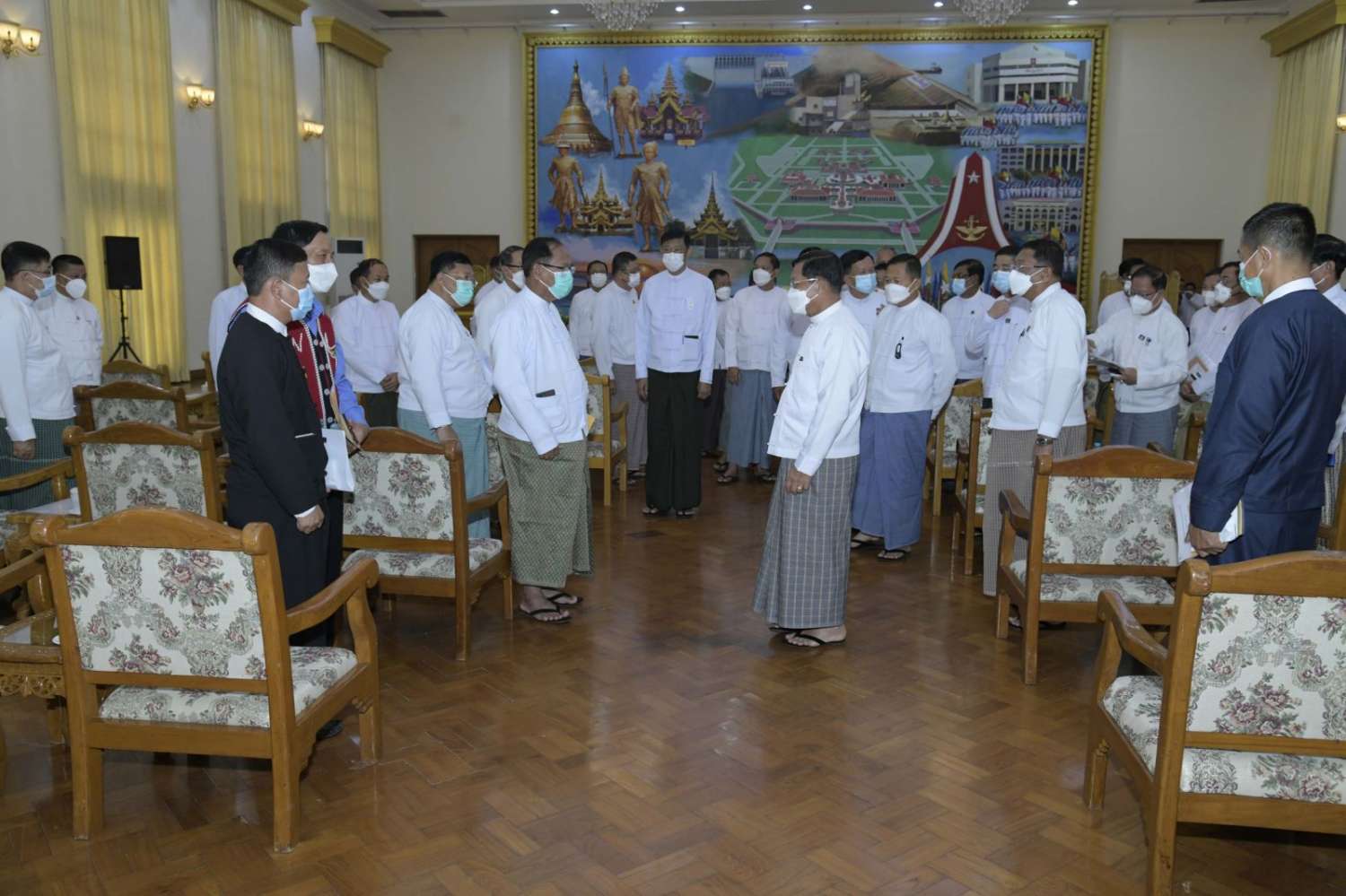 အခမ်းအနားအပြီးတွင် နိုင်ငံတော်စီမံအုပ်ချုပ်ရေးကောင်စီဥက္ကဋ္ဌ နိုင်ငံတော်ဝန်ကြီးချုပ်နှင့် အဖွဲ့ဝင်များသည် တက်ရောက် လာကြသူများအား ရင်းရင်းနှီးနှီး လိုက်လံနှုတ်ဆက်ခဲ့ကြသည်။