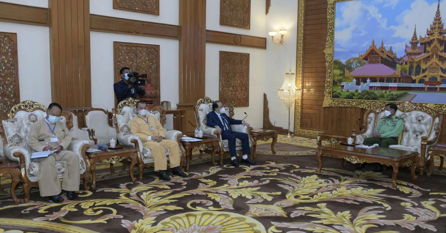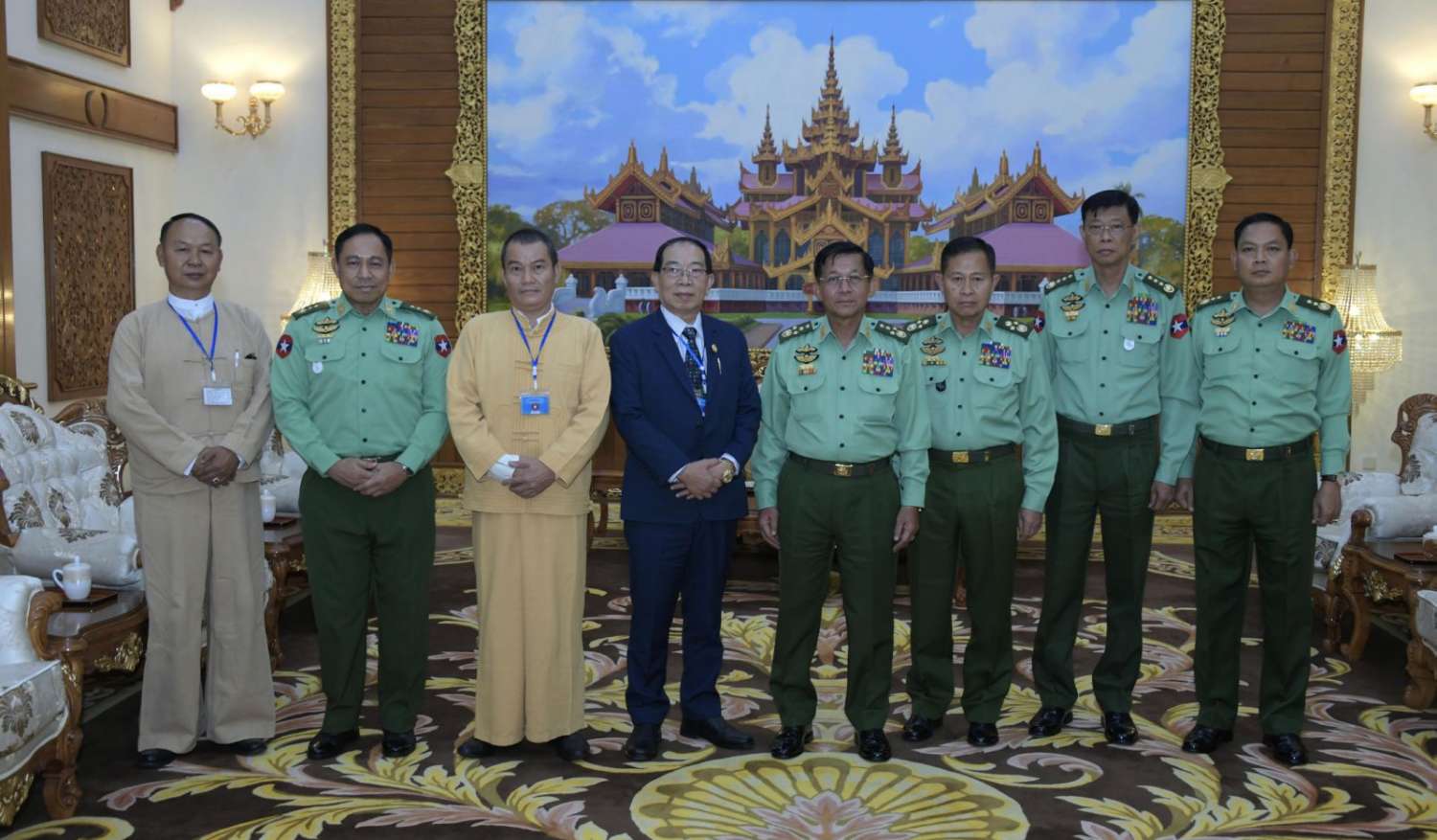 နိုင်ငံတော်စီမံအုပ်ချုပ်ရေးကောင်စီဥက္ကဋ္ဌ တပ်မတော်ကာကွယ်ရေးဦးစီးချုပ် ဗိုလ်ချုပ်မှူးကြီး မင်းအောင်လှိုင်သည် သျှမ်းပြည်ပြန်လည်ထူထောင်ရေးကောင်စီ (RCSS) အဖွဲ့ဥက္ကဋ္ဌ ဗိုလ်ချုပ်ကြီး ယွက်ဆစ်ဦးဆောင်သည့် ငြိမ်းချမ်းရေးကိုယ်စားလှယ်အဖွဲ့အား ယနေ့နံနက်ပိုင်းတွင် နေပြည်တော်ရှိဘုရင့်နောင်ရိပ်သာ ဧည့်ခန်းမဆောင်၌တွေ့ဆုံ၍ ငြိမ်းချမ်းရေးဆိုင်ရာကိစ္စရပ်များ ဆွေးနွေးသည်။