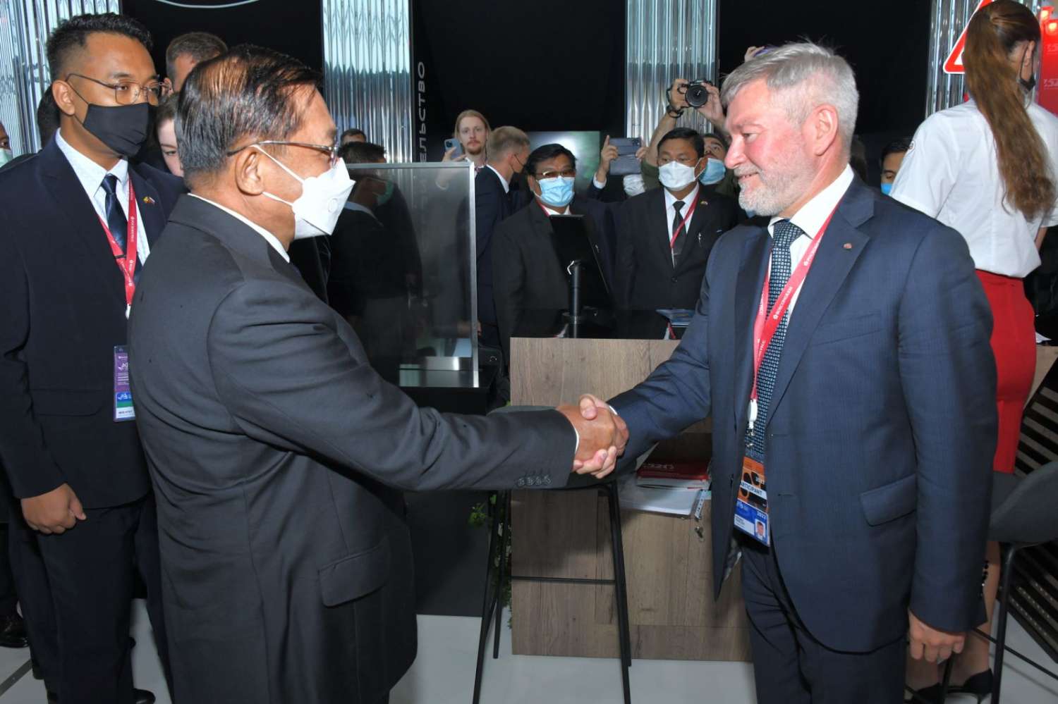 ထို့နောက် နိုင်ငံတော်စီမံအုပ်ချုပ်ရေးကောင်စီဥက္ကဋ္ဌ နိုင်ငံတော်ဝန်ကြီးချုပ်နှင့် Rosatom State Corporations ၏ အမှုဆောင်အရာရှိချုပ်တို့သည် အမှတ်တရ လက်ဆောင်ပစ္စည်းများ အပြန်အလှန် ပေးအပ်ကြသည်။